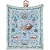 Lahome Christmas Blankets Throws, Christmas Decorations Gifts for Kids, Reversible Flannel Fleece Winter Holiday Blanket Xmas Elk Throw Blanket for Couch Couch Sofa Bed, Blue, 50"x60"