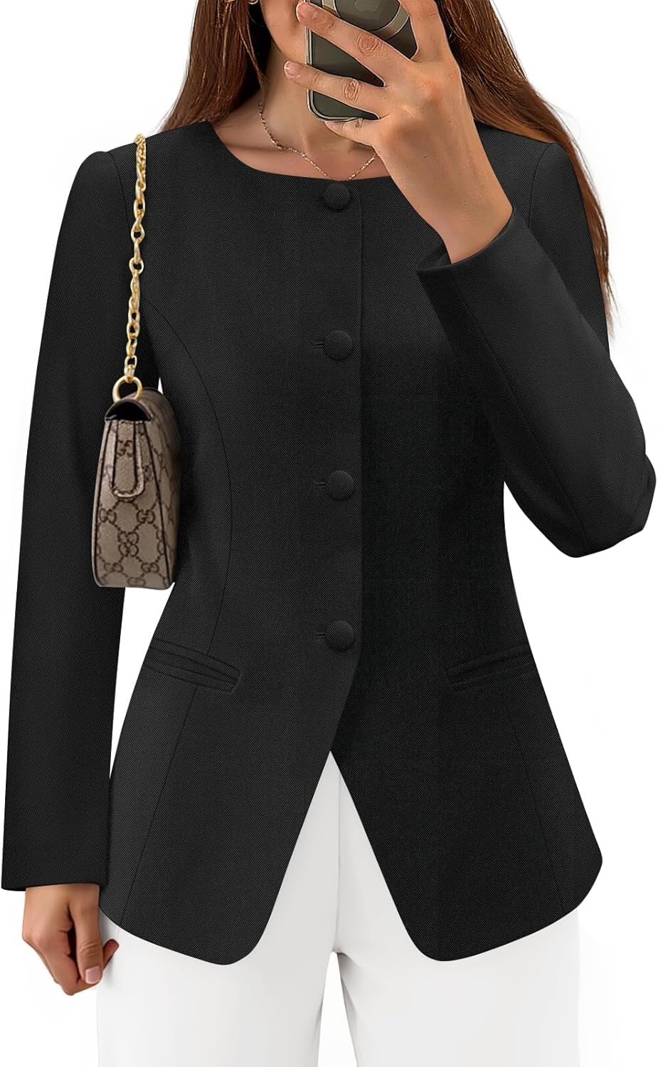 ZESICA Womens Business Casual Blazers Fall Long Sleeve Button Suit Jackets Office Work Outfits Fitted Blazer Clothes 2025