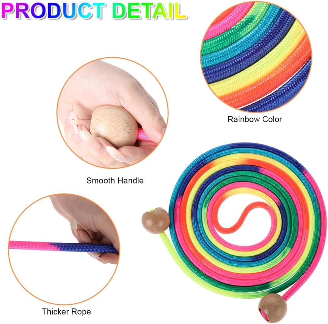 【High-quality Material】: The rope is made of high-quality nylon and has a colorful weave. The wooden ball handle is polished for a smooth and ergonomic feel