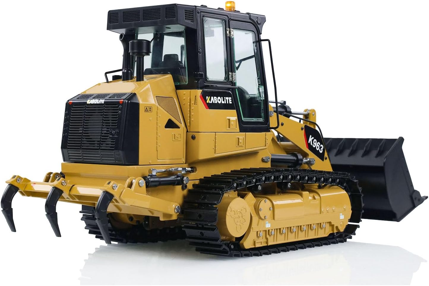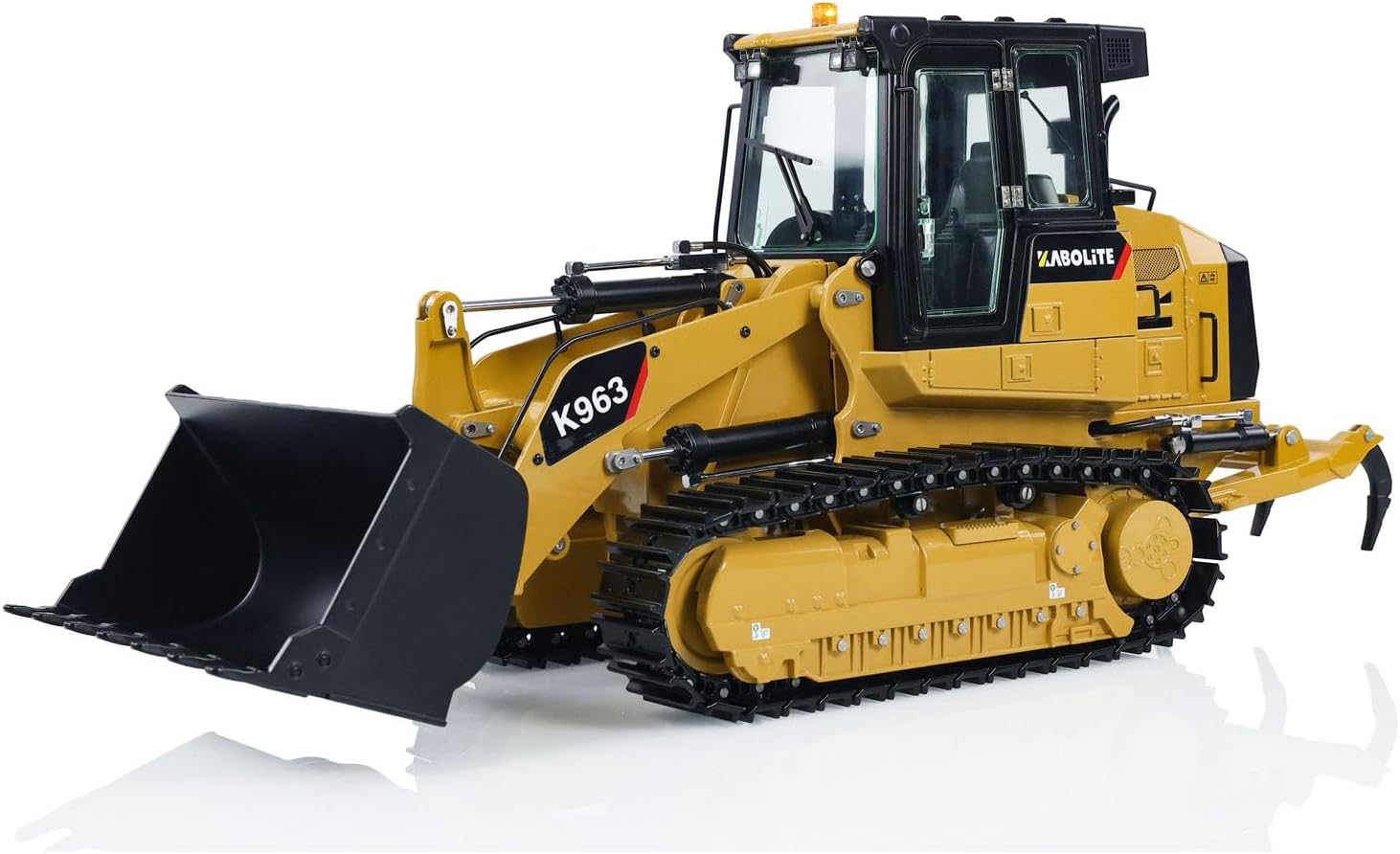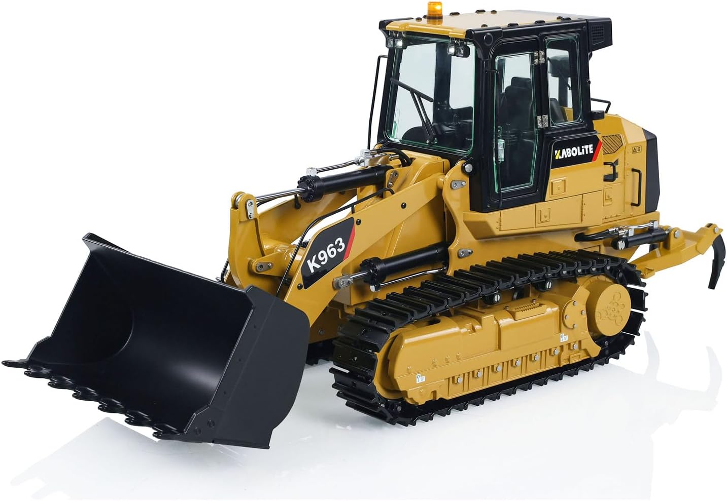 #Kabolite 1/16 Hydraulic RC Loader K963-100 Remote Control Construction Vehicles #Specification: Manufacturer: Kabolite Item Condition: New, Assembled and Painted Scale: 1/16 Material: Metal, Plastic Product Dimensions: 533x188x242 (MM) Product Net Weight: 8.44 (KG) Packaging Method: Outer Box + EPP Foam Outer Box Size: 68x27.5x36.5 (CM) Gross Weight: 12.06 (KG) ID: KABO-K963-100-RTR-Y #The Package Includes: 1/16 RC Hydraulic Loader Model Motor Servo ESC Hydraulic System Light System FlySky ST8 Remote Controller and Receiver Battery Charger #The Package Does Not Include: Sound System Hydraulic Oil
