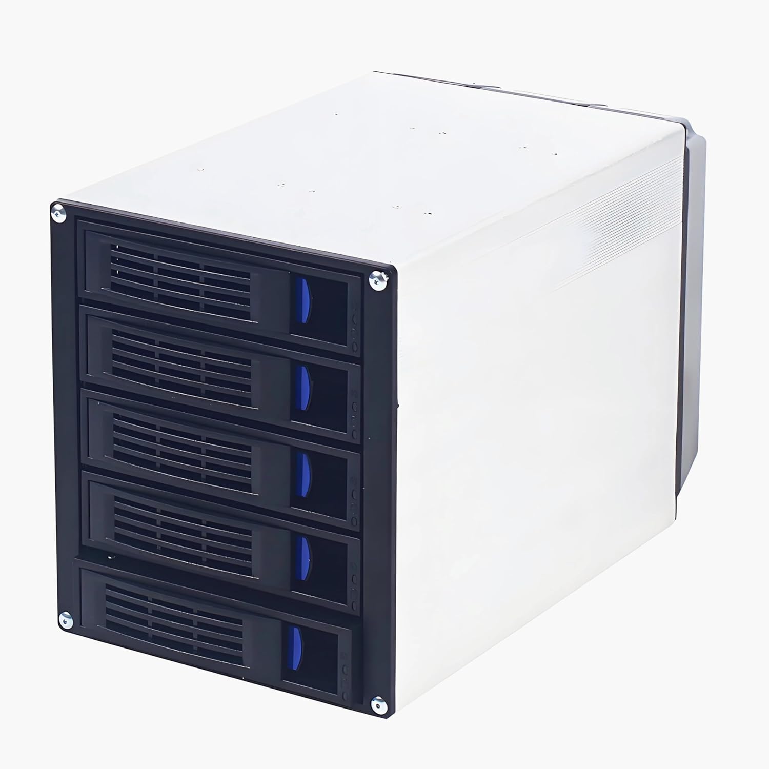 5 Bay Hot Swap Cage, Hard Drive Enclosure with Cooling Fan Removable Drive Bays Hard Disk Enclosure 5 x SATA 2.5/3.5" HDD or SAS HDD Tool-Free HDD Enclosure Support Hot, Compatible with SATA I/II/III