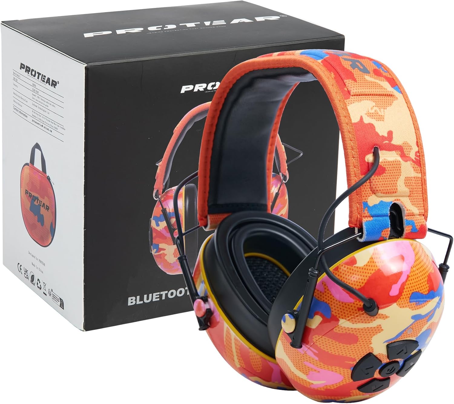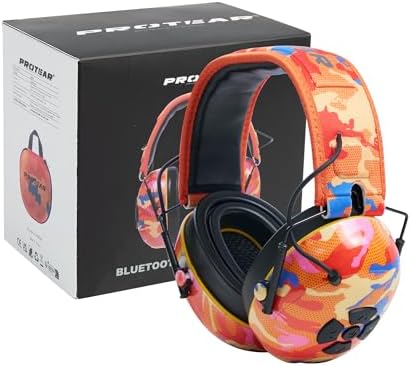 Upgraded Bluetooth 5.4 Hearing Protection 25dB,with Gel Ear Pads Noise Reduction Ear Defender,Rechargeable Safety Earmuffs for Mowing,Workshop,Wood Working(Camouflage Orange)