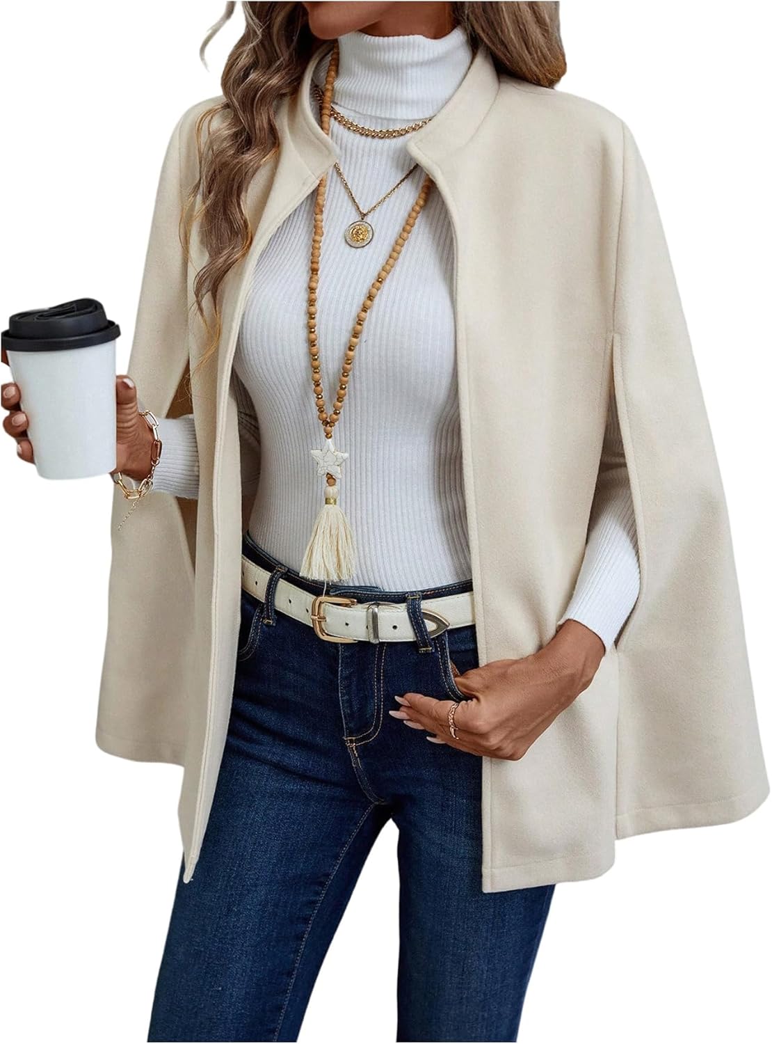 Floerns Women's Elegant Open Front Cape Coat Crew Neck Split Sleeve Dressy Cloak Outwear