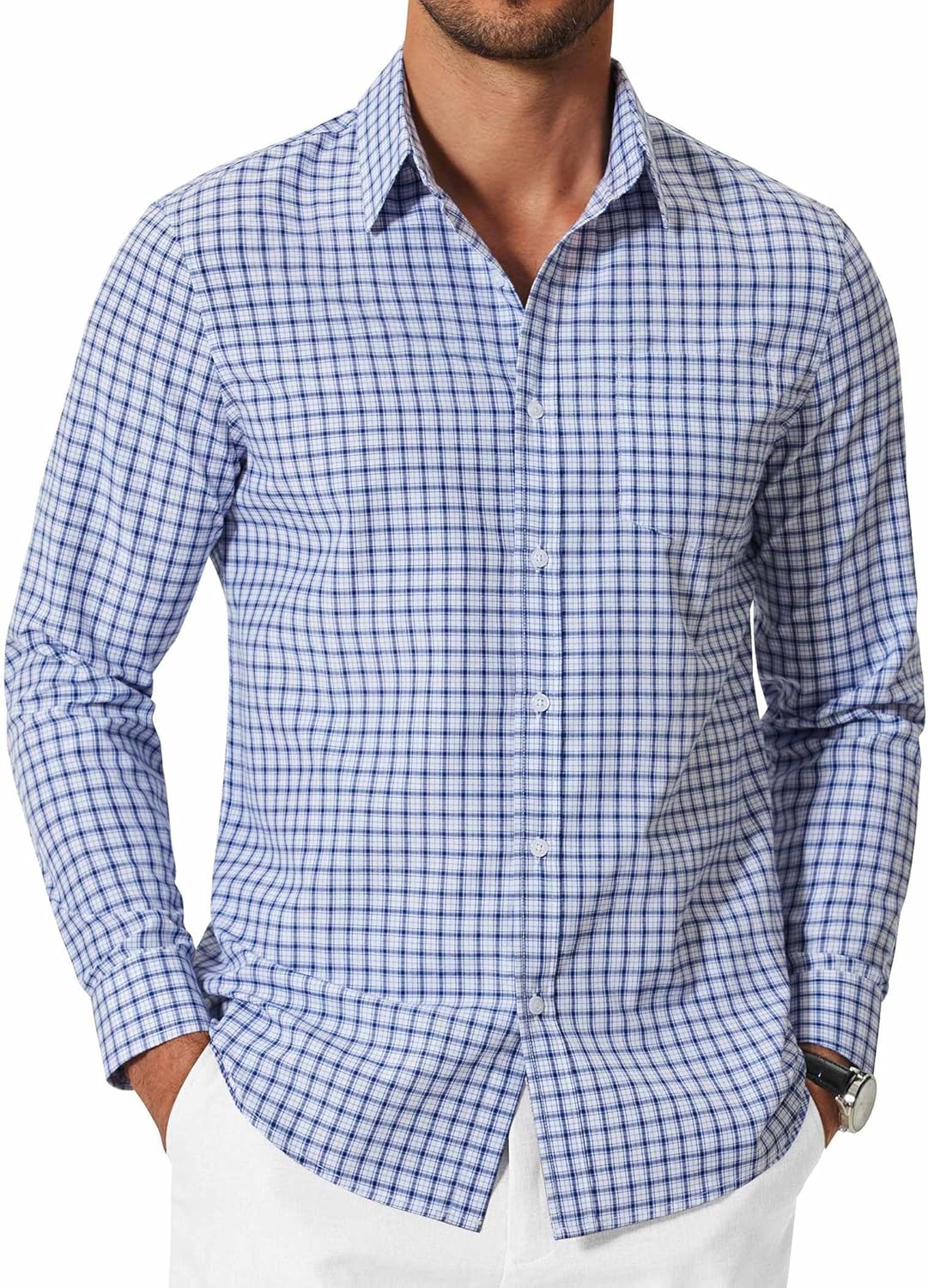 COOFANDY Men's Plaid Button Down Shirt Cotton Long Sleeves Dress Shirt Wrinkle Free Casual Gingham Shirt