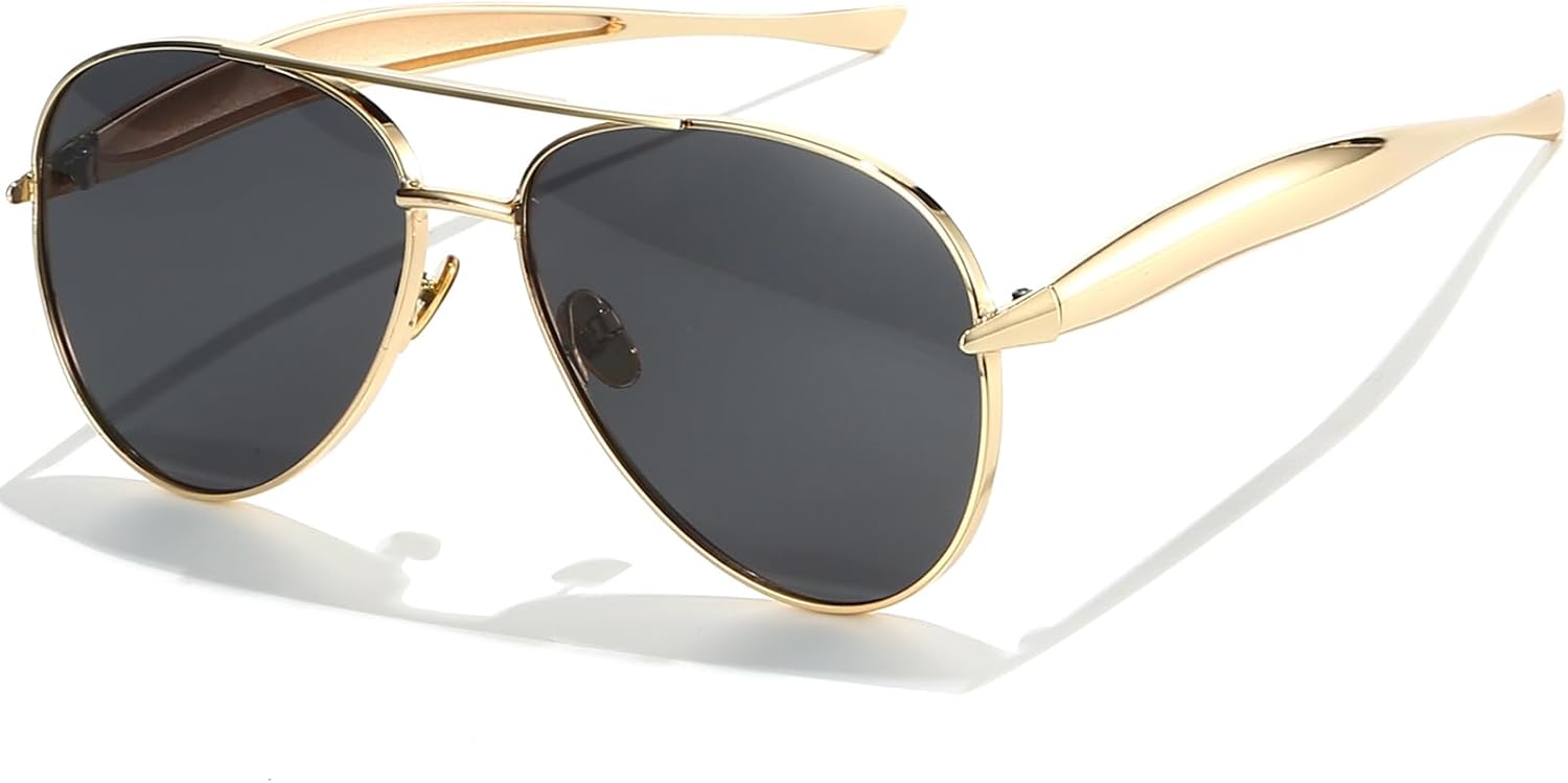 AIEYEZO Gold Aviator Sunglasses for Women Men Oversized Thick Frame Sun Glasses Fashion Retro Sardine Pilot Shades