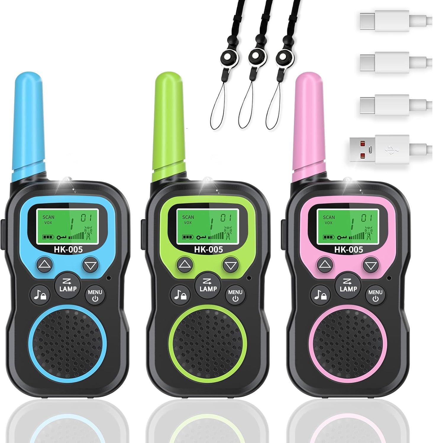 3 Pcs Walkie Talkies for Kids Rechargeable 3 KM Handheld Walkie Talkies Long Range 22 Channel 2 Way Radio Birthday Party Gifts for 3-12 Year Old Girls Boys Outside Adventure Camping Hiking