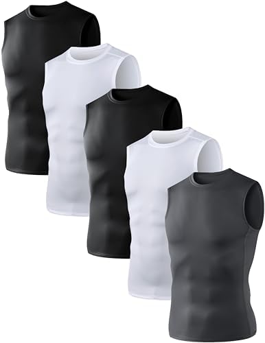 OYGSieg 5/6 Pack Men's Athletic Compression Shirts Sleeveless Tank Top Base Layer Sports Workout Shirts for Basketball