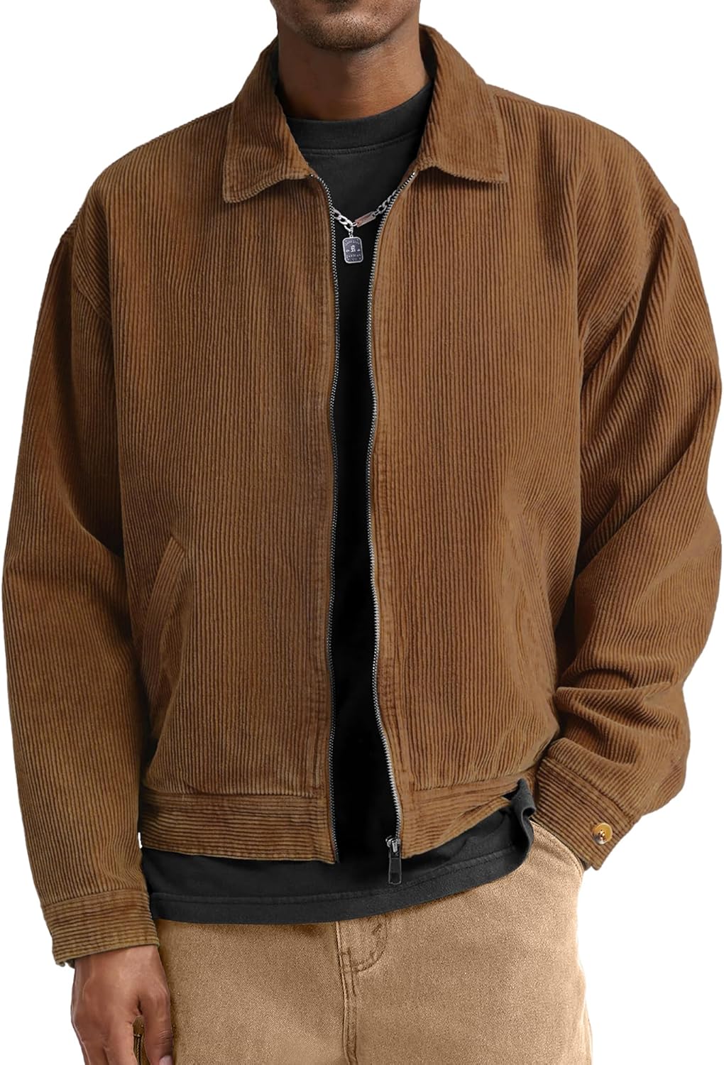 Comdecevis Men's Corduroy Bomber Jacket Zip Up Coat Trucker Vintage Jacket With Pocket&Lining
