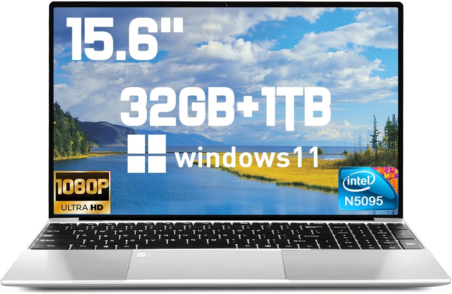 2025 Latest 15.6'' Laptop Compatible with Windows 11, 1TB SSD 32GB Dual-Channel RAM, Quad-Core Processor(Max 2.9GHz), 1080p FHD Display, Backlit Keyboard, Fingerprint, Webcam, Mini-HDMI, WiFi5, BT5