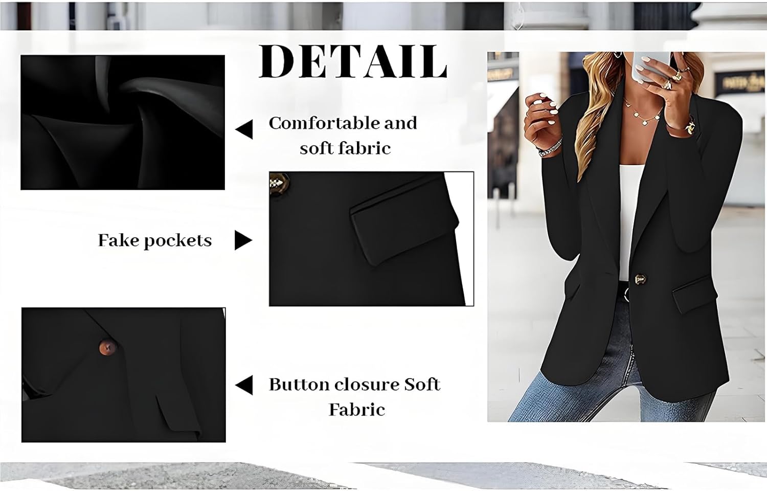 Welcome to FPMLUXLL Online Store SERVICE: If you have any doubt ,please feel free to contact us,We will reply within 24hours. NOTE: We are a manufacturer from Asia, sizes may different from US sizes. Please check the Size Chart before purchasing. If you want a looser fit, it is recommended to buy 1-2 sizes larger for a more suitable fit. Q&A Q1: Is the sizing of this blazers jacket consistent with the size chart? A1: Generally, yes, the jacket sizing aligns with our size chart. For the best fit, compare your actual chest, shoulder, and sleeve measurements to the chart before ordering, as minor variations can occur. Q2: How is the quality and craftsmanship of this blazers? A2: This jacket offers good quality for its price point. It features durable fabric, well-secured stitching, smooth lining, and neat finishing details like functional buttonholes, indicating solid overall construction. Q3: Is this suit jacket particularly prone to wrinkling or fading? A3: Made typically from wool/polyester blends, it resists wrinkles reasonably well during normal wear. Color fading is minimal with proper care; avoid excessive sunlight and follow cleaning instructions to maintain appearance. Size Chart:Size: Small US: 4 UK: 8 EU: 34 Bust: 98cm/38.58'' Sleeve: 58cm/22.83'' Length: 61cm/24.02'' Size: Medium US: 6 UK: 10 EU: 36 Bust: 102cm/40.16'' Sleeve: 59cm/23.23'' Length: 62cm/24.41'' Size: Large US: 8 UK: 12 EU: 38 Bust: 106cm/41.73'' Sleeve: 60cm/23.62'' Length: 63cm/24.80'' Size: X-Large US: 10 UK: 14 EU: 40 Bust: 112cm/44.09'' Sleeve: 61cm/24.02'' Length: 64cm/25.20'' Size: 2X-Large US: 12 UK: 16 EU: 42 Bust: 118cm/46.46'' Sleeve: 62cm/24.41'' Length: 65cm/25.59''