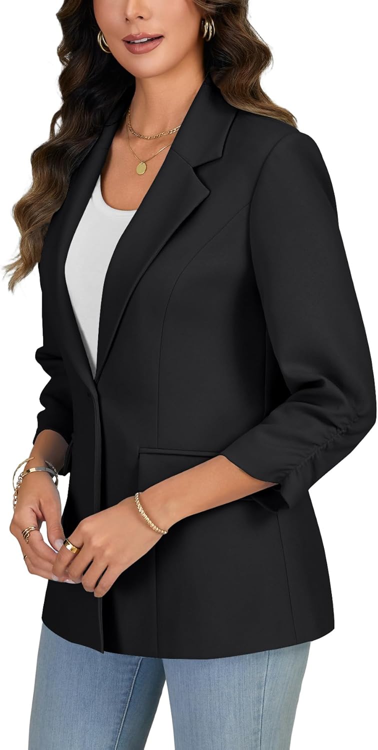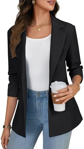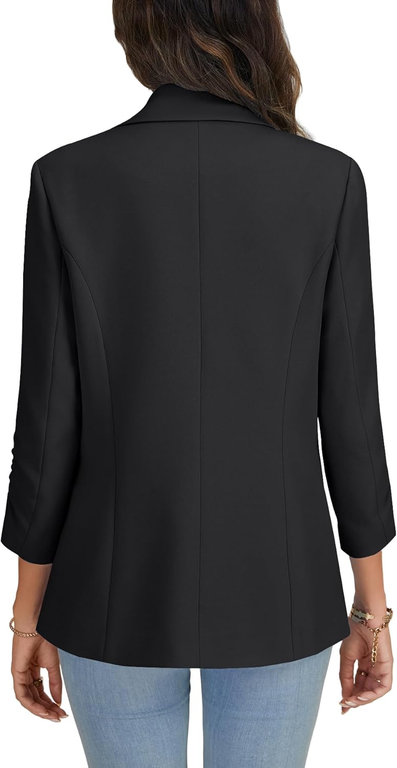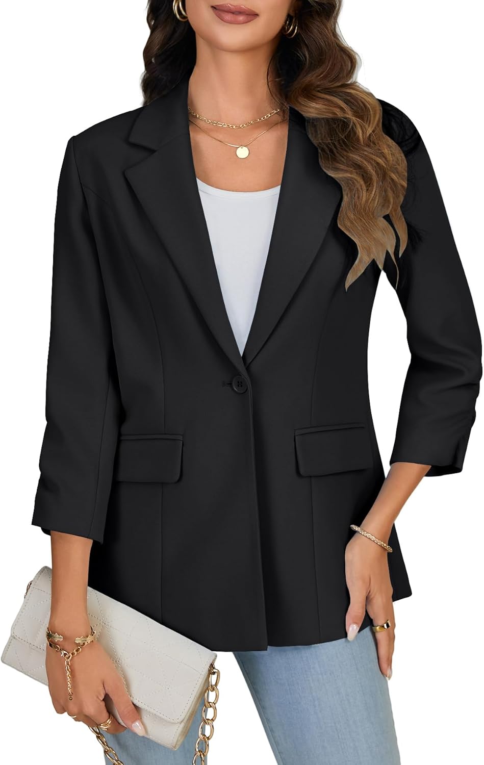 LYANER Women's Open Front Lapel 3/4 Sleeve Button Business Casual Blazer Jackets with Pockets