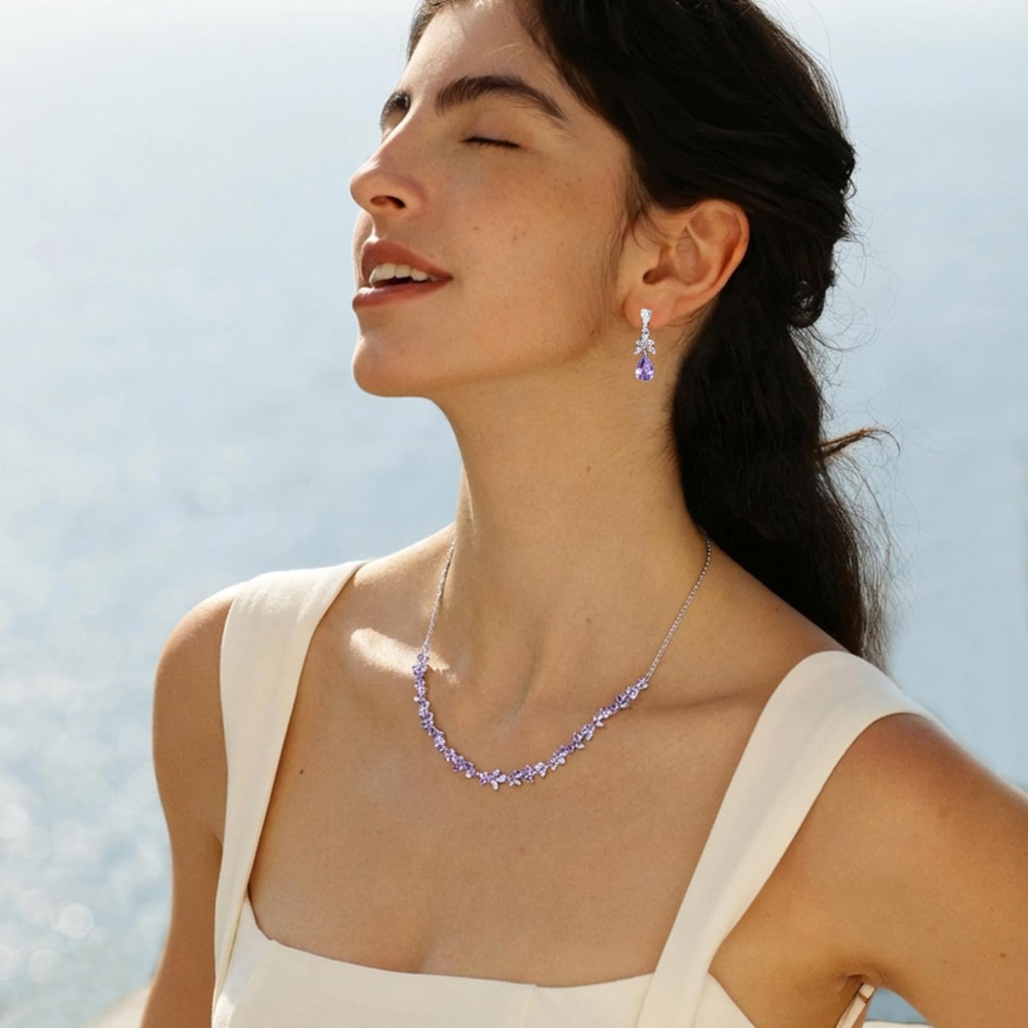 FANCIME Wisteria Collection Jewelry for Women White Gold Plated Sterling Silver Simulated Diamond Flower Pendant Fine Jewelry Wedding Anniversary Birthday Mothers Day Gifts for Wife Women Bride Her
