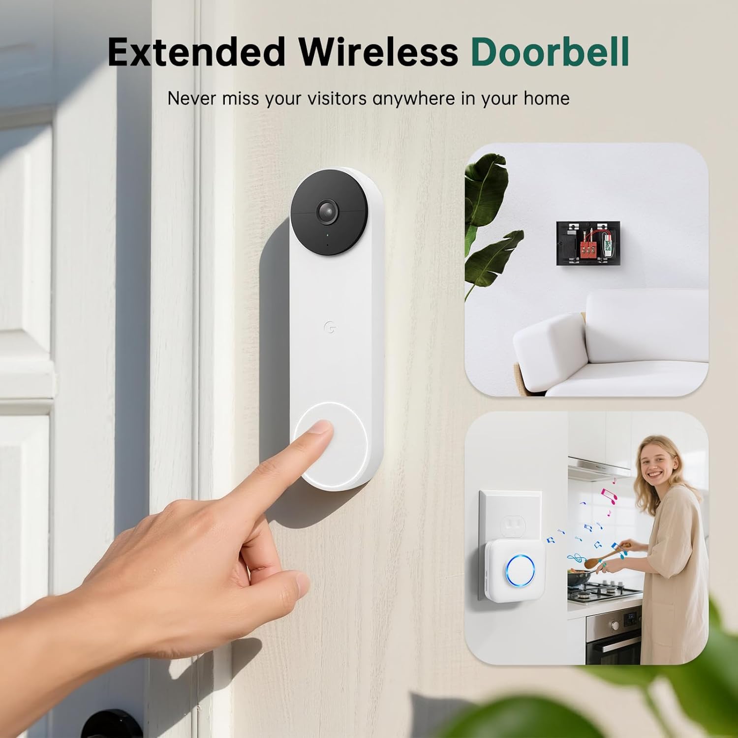 Wireless Doorbell Chime - Compatible with Google Nest Doorbell (Wired, 2nd Gen) and Google Nest Doorbell (Battery) with Wired Transmitter (1 Video Doorbell Extender 1 Receiver)