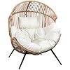 Shintenchi Wicker Egg Chair Outdoor Rattan Patio Chair with Cushion,Oversized Patio Lounge Chairs with Cushion Egg Basket Chair, Egg Seat for Indoor Living Room Bedroom Outside Patio Backyard Balcony