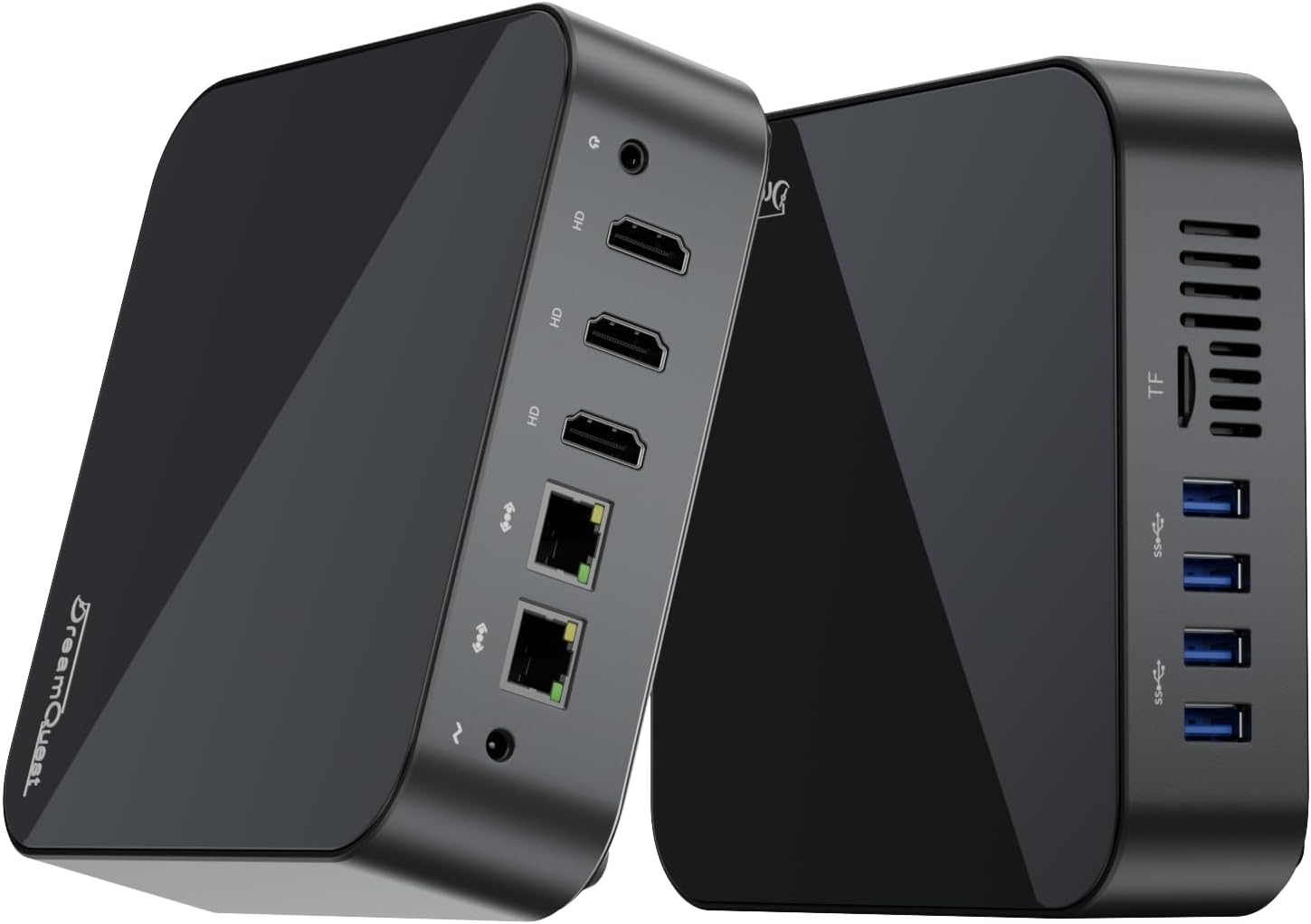 【WiFi&Bluetooth-Simply Compatible】DreamQuest small pc is Equiped with wired and wireless connections, enabling instant web browsing, smooth file downloads, and buffer-free movie viewing. Additionally, the Bluetooth and external interfaces allow to connect various electronic devices, such as mice, keyboards, headphones, monitoring devices, printers, monitors, and TVs. The multiple connection options free you from the worries of connectivity issues with your electronic devices.