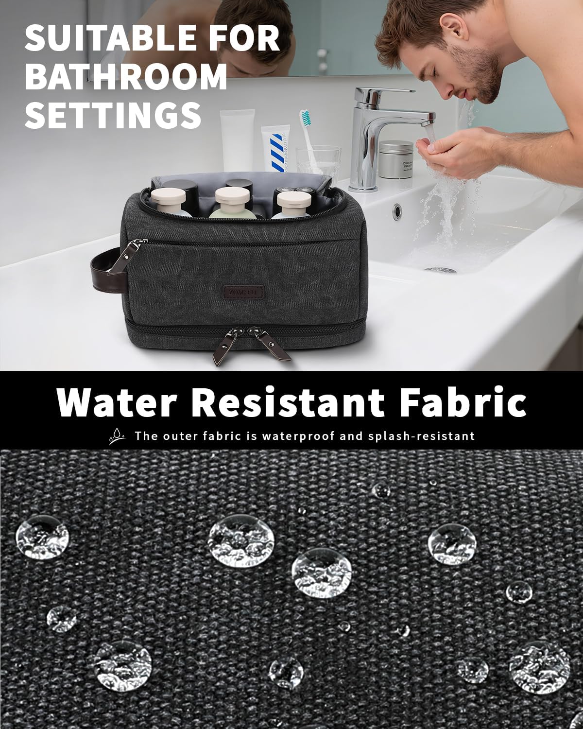 Water-Resistant Fabric: The mens toiletry travel bag is made of waxed waterproof canvas fabric with tight stitching, which is waterproof and splash-proof and protects your toiletries from splashing in wet environments