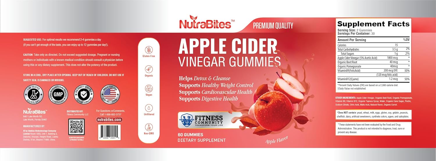 Elevate your daily routine with NutraBites Apple Cider Vinegar Gummies. We've taken all the powerful benefits of traditional apple cider vinegar and put them into a delightfully chewable, delicious gummy. Free from the unpleasant acidic taste of liquid ACV, these innovative gummies are a simple and enjoyable way to supplement your diet. Each serving is enriched with essential B-vitamins, including B12 and Folic Acid, which are known for their role in supporting cellular energy and overall vitality. Our commitment to quality means these gummies are made with clean, non-GMO, and gluten-free ingredients. With NutraBites, you get a great-tasting, convenient vitamin that fits seamlessly into your lifestyle. It's the perfect alternative for anyone looking to add apple cider vinegar to their daily regimen.