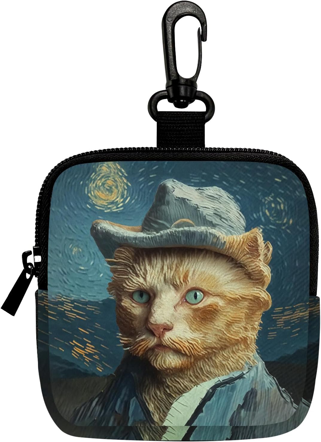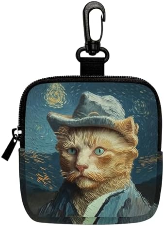 Cat Gentleman Mini Coin Purse Key Chain, Multifunctional Pouch for Keys Coins Earphone Lipstick, Card Holder Data Cable Organizer Zipper Pouch Bag Accessories, Cat Lover Gifts