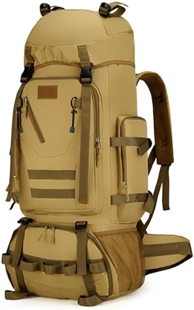 Outdoor Hiking Backpack Men's 100l Large Capacity Lightweight Backpack Women's Hiking Waterproof Tourism (Khaki)