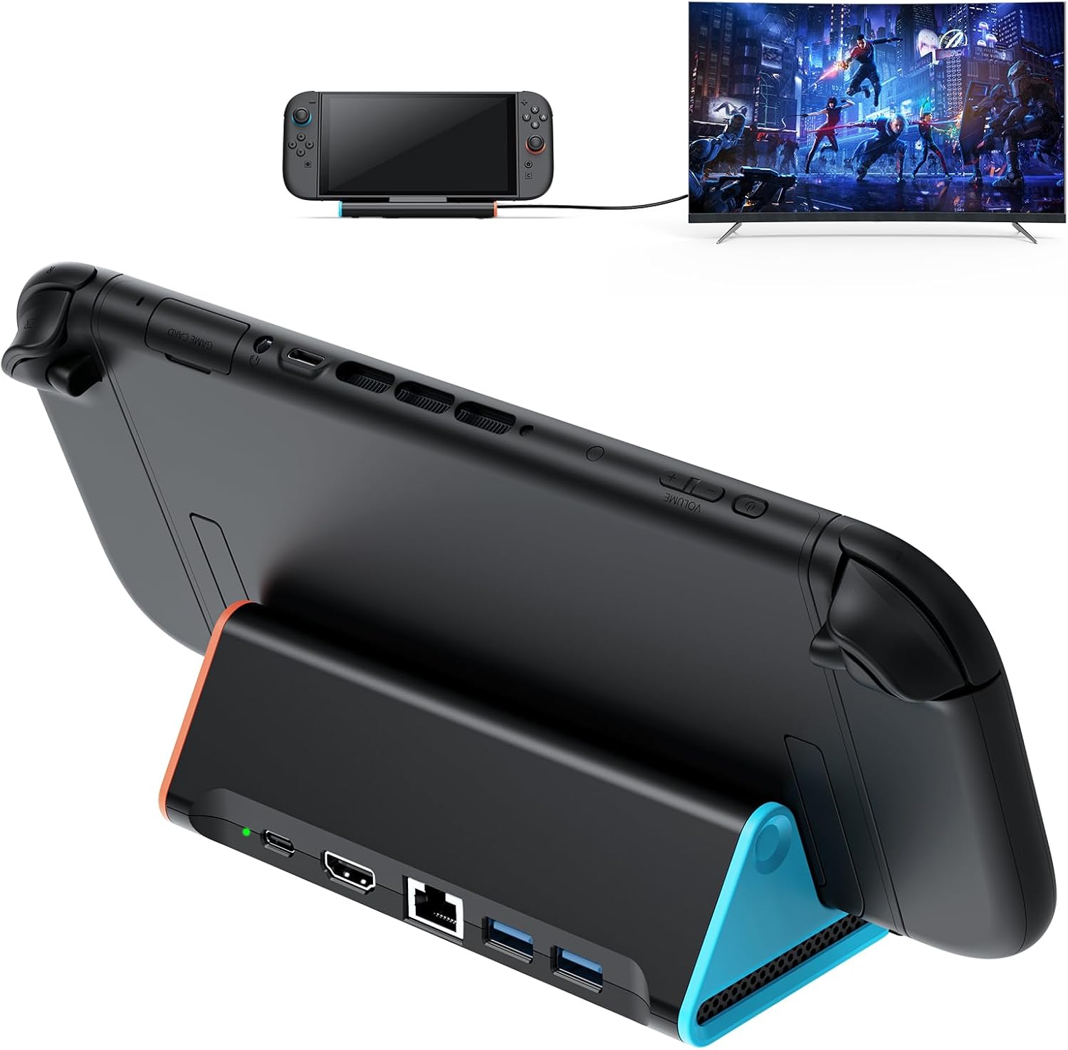 【Ethernet LAN Port】This Switch 2 tv stand built-in 1000Mbs ethernet LAN on this dock, gamers can get a stable and faster network