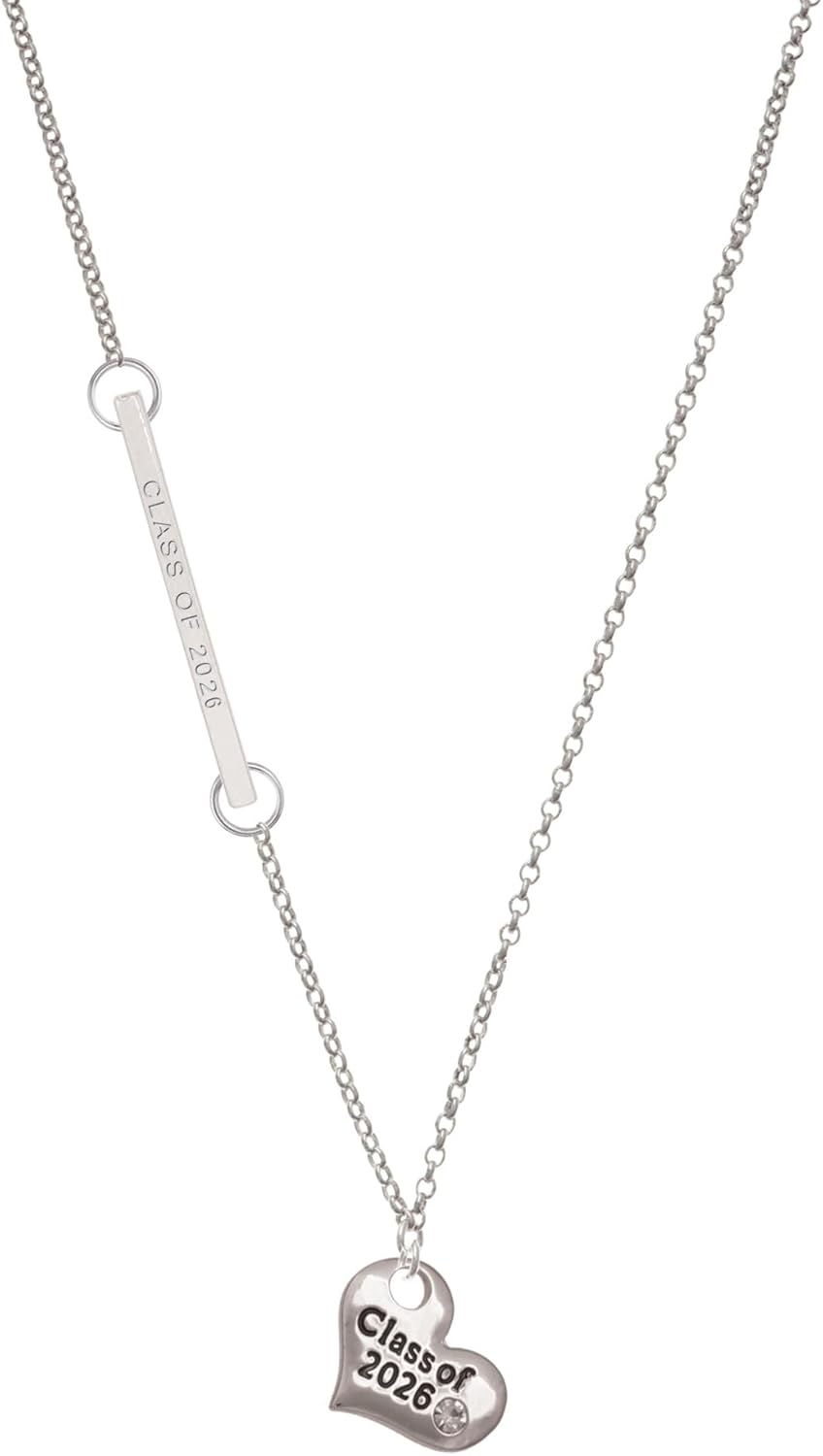 Delight Jewelry Silvertone Class of Heart - Class of 2026 Delicate Bar Necklace, 18.75"