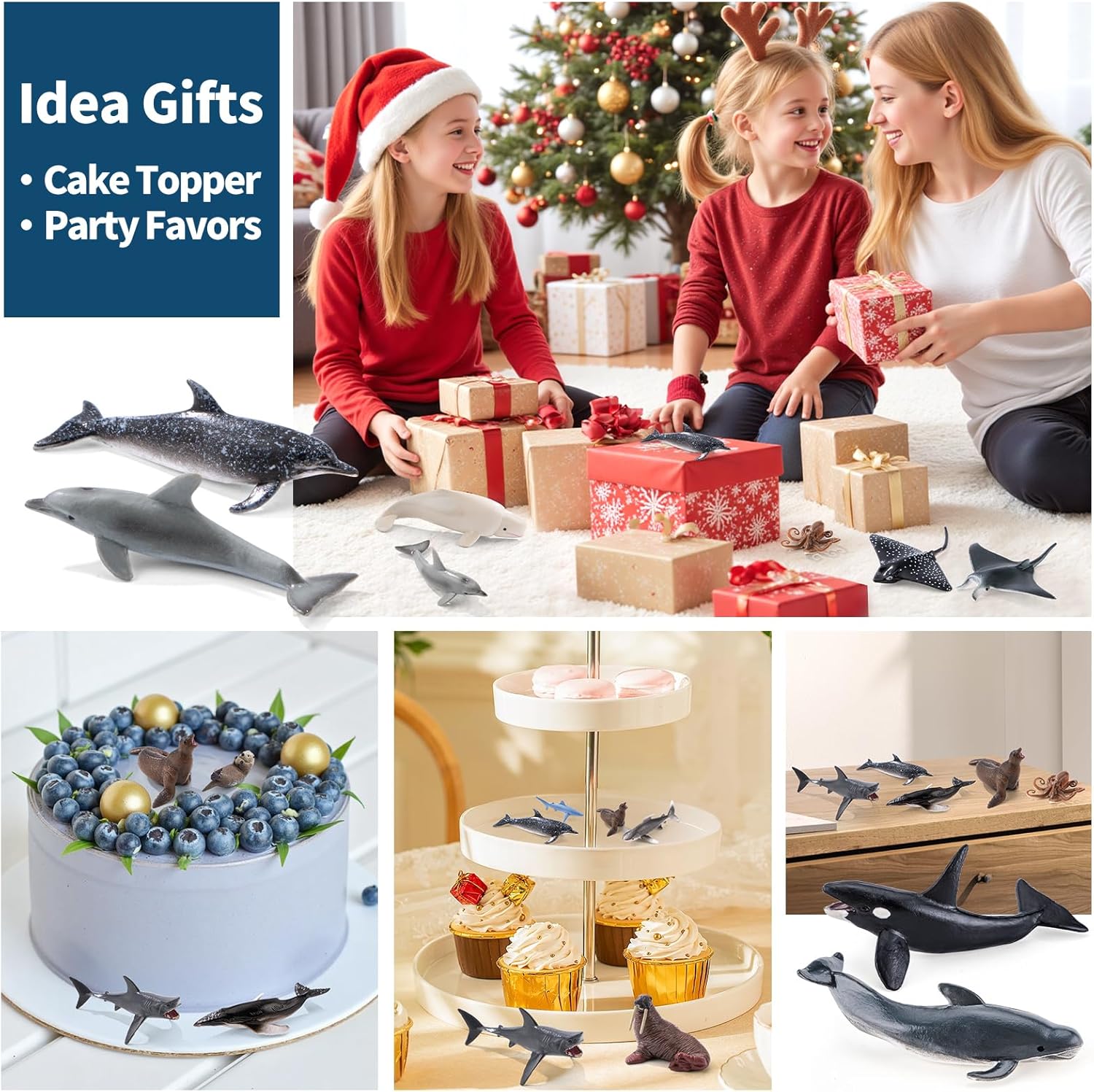 Awesome Ocean Animal Cake Topper: These sea animals toys for kids are ideal birthday gift or prize for kids! Great as shark cake toppers for a shark-themed cake or gifts for boys and girls. Fun, Educational, and ideal for decorating bookcases or rooms.