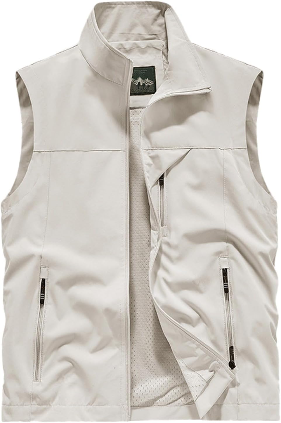 JiXiang Mens Vest Outdoor Workout Lightweight Sleeveless Work Jacket Hiking Travel Breathable Outerwear with Multiple Pockets