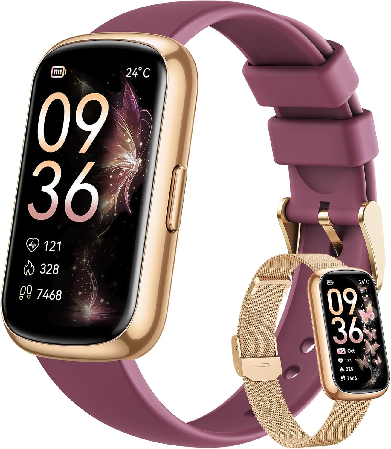 24-Hour Health Activity Tracker:This fitness watch monitors your heart rate and blood oxygen levels (does not measure blood pressure) in real time, 24/7. It accurately tracks your sleep patterns, including deep sleep, light sleep, and awake times, helping you understand your sleep quality. Additionally, the smart watches for women help you track your menstrual cycle, and all your health data syncs with the GloryFit app, giving you easy access to personalized reports