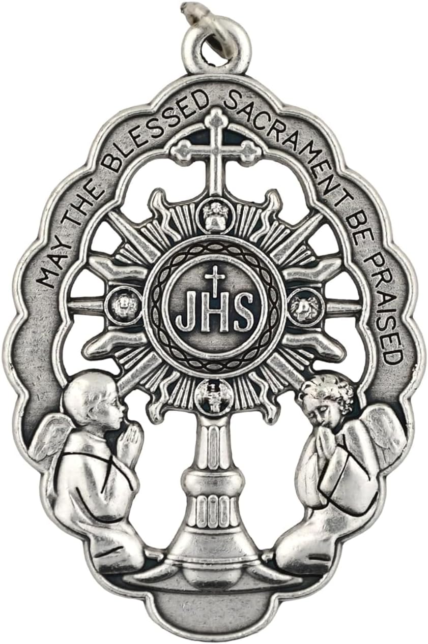 May the Blessed Sacrament Be Praised Silver-tone Monstrance Pendant | Delightful design | Handcrafted by Italian Craftsman | Holy Eucharist Monstance Medal