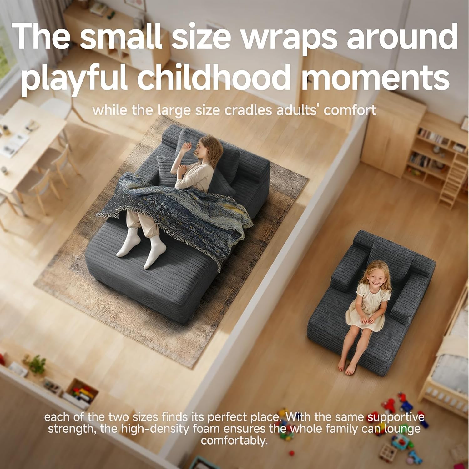 This small boneless couch has no sharp edges or hard frames (great for active kids) and supports up to 350 lbs—sturdy enough for daily use. The thick corduroy fabric resists scratches and wear (even from toys or climbing!), and the non-toxic foam filling is hypoallergenic. It’s not just an indoor chaise lounge chair—it’s a durable, parent-trusted piece that blends with your home decor while keeping kids comfortable and safe.