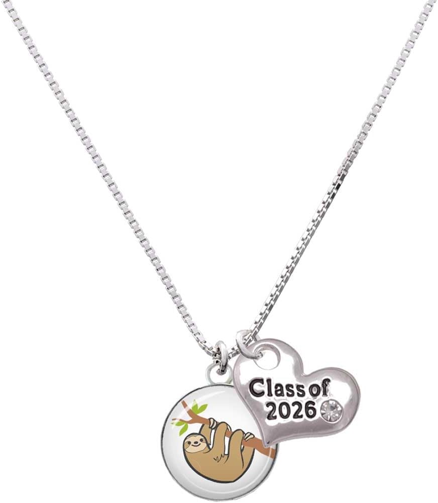 Glass Dome Sloth Silvertone Class of 2026 Heart Charm Necklace, 17.5+2". Glass Dome Sloth is approx.: 0.9 x 0.7 x 0.2 inches (HxWxD) including loop. High quality printed paper sealed under a glass dome in a metal frame. Celebrate a milestone with our exquisite 0.8 mm Delicate Box Chain Necklace, measuring 17.5 inches in length with a 2 inch extender chain and featuring a secure lobster claw clasp. The lovely heart pendant is approximately 0.76 x 0.63 x 0.09 inches, proudly displays "Class of 2026" on one side with a clear crystal, making it a perfect keepsake for graduates. Embrace your journey and wear your accomplishments with grace. Hand assembled in the USA from imported parts. Our jewelry is meticulously hand assembled in the USA, ensuring exceptional quality and craftsmanship. Each piece is created using carefully sourced imported components, resulting in unique designs that reflect both elegance and artistry. Perfect for any occasion, our collection offers a blend of sophistication and individuality, making it a cherished addition to your accessory wardrobe. PLEASE NOTE: Our products are not intended for children 14 years and younger.
