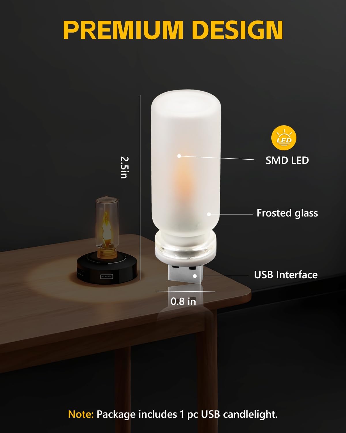 ✅[Portable & Space Saving] The package includes 2 pcs Mini USB frosted glass flame light, compact and lightweight design, allowing you to easily place it on a bedside table, bookshelves, coffee table, or carry it with you during camping trips, picnics or travel.
