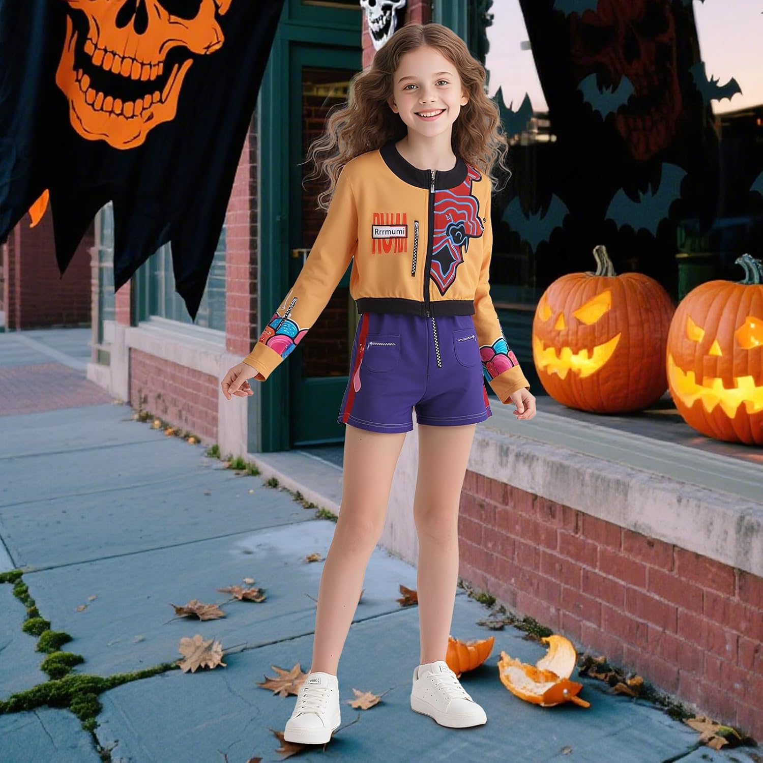 Girl Pop Singer Costume Demon Hunter Rumi Top Pants Dress Dancer Dress Up Halloween Cosplay Outfits Set