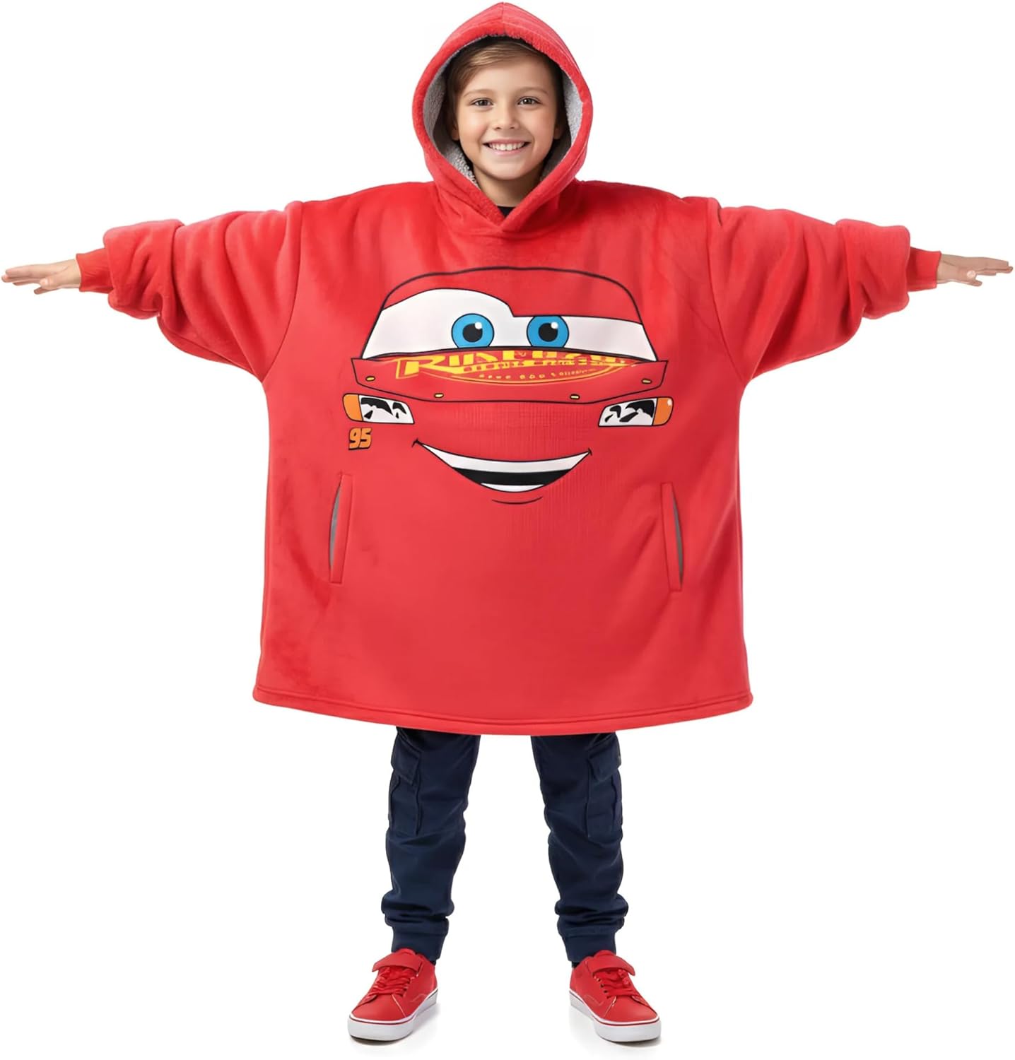 Disney Cars Jack Skellington Stitch Sherpa Lined Oversized Hoodie with Pockets for Big Kid One Size (Fits Sizes 4 to 10)