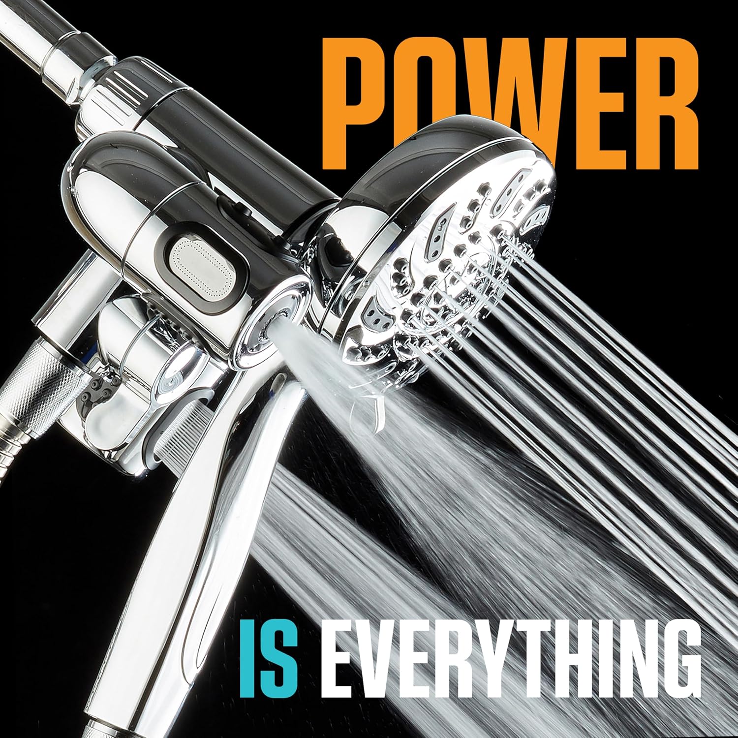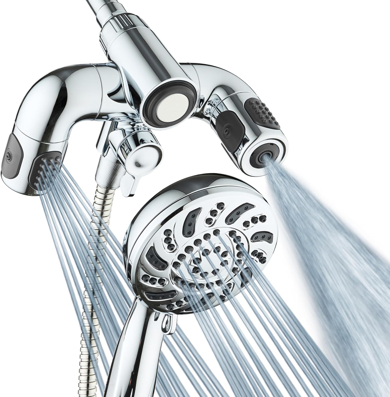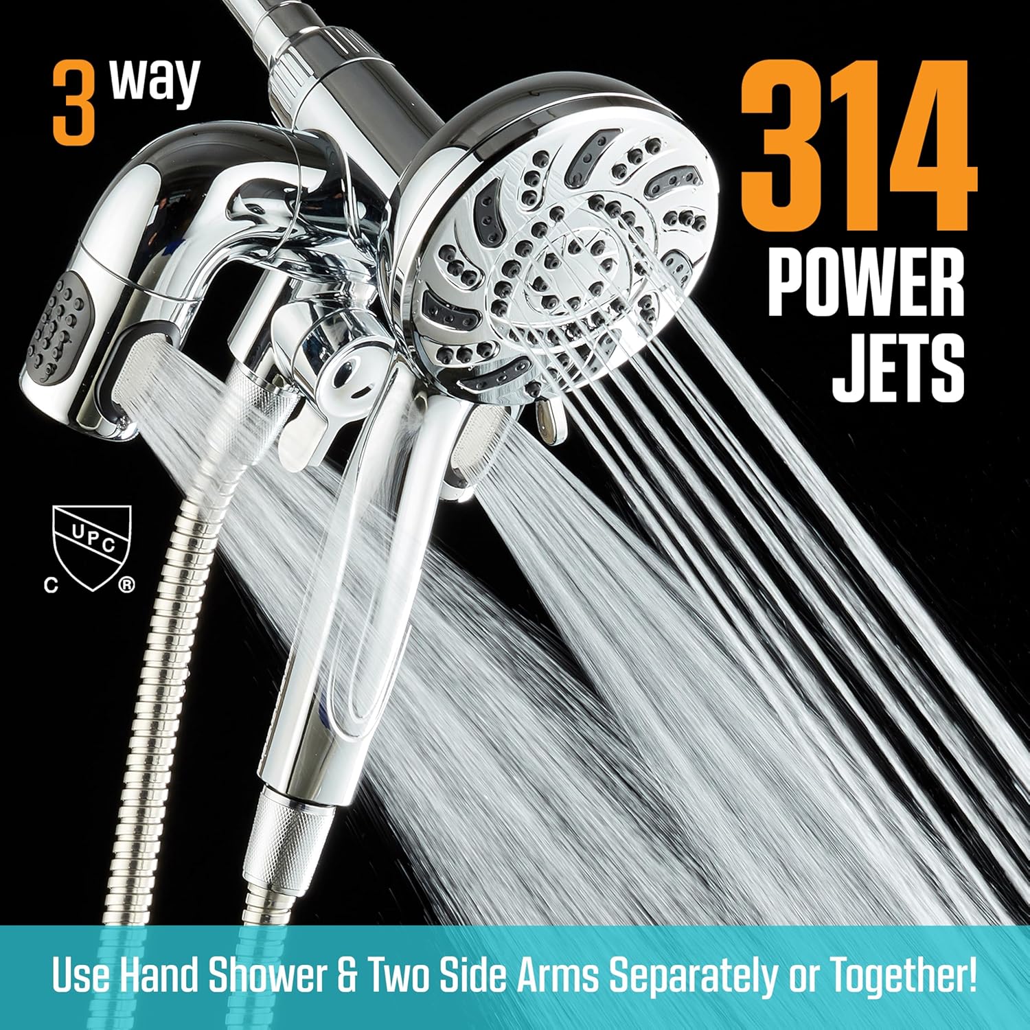 Aquadance High Pressure 156 Setting 14 Zone Shower Head & Handheld 3-way Combo System - Magnetic Docking, 314 Power Jets, Dual Adjustable Arms, 6 ft. Metal Hose, All Chrome Finish, Top American Brand