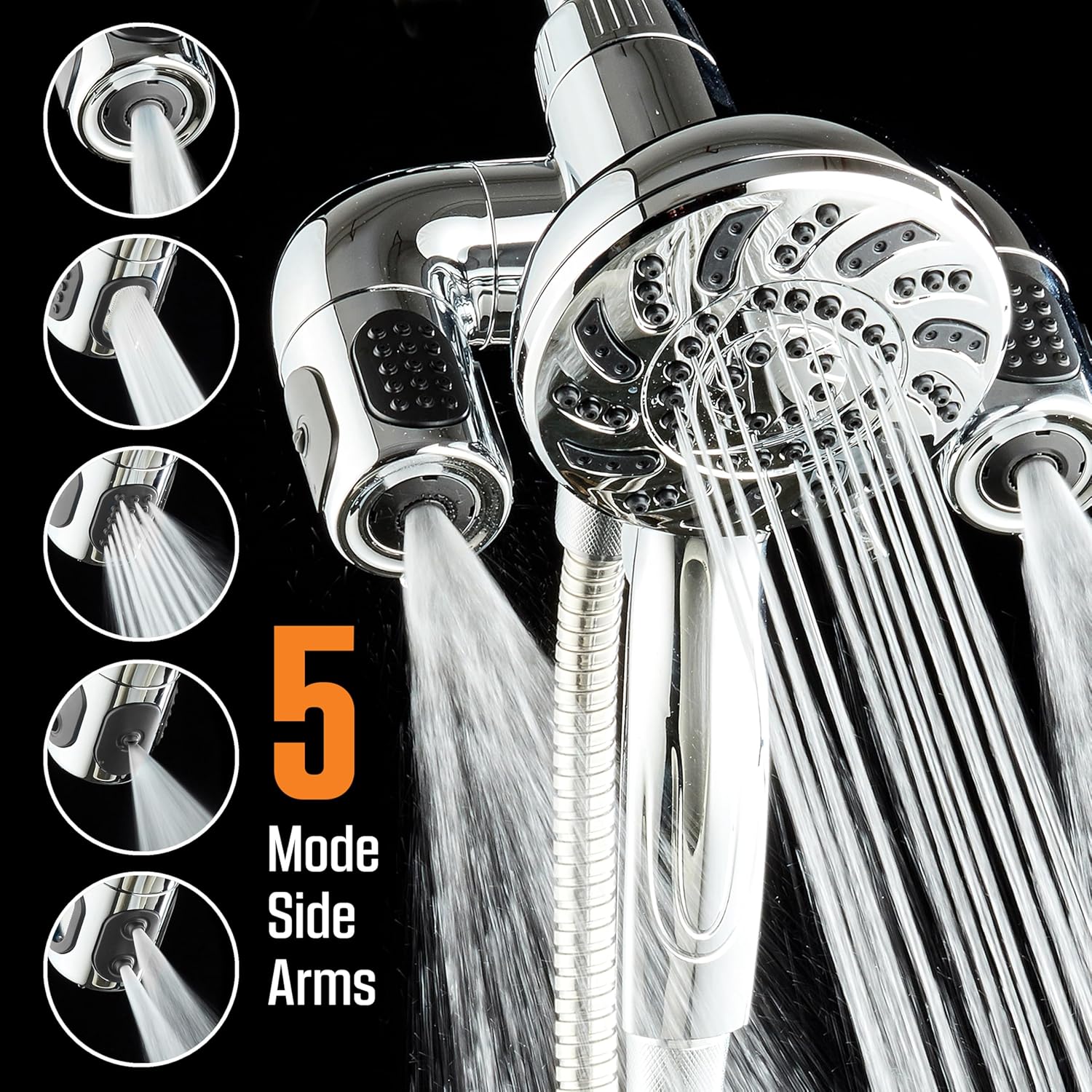 MAGNETIC HAND SHOWER WITH ADJUSTABLE POWER ARMS – Experience the unmatched power, convenience, and versatility from the next generation of luxury showerheads! Each 5-zone Side Arm can be instantly switched to the desired flow pattern by simply turning it, offering you 25 combination options. High-pressure 6-setting Magnetic Hand Shower with advanced high-precision 4-zone dial and water-saving Pause mode can be used overhead or up-close. Anti-clog nozzles ensure reliable clog-free performance.