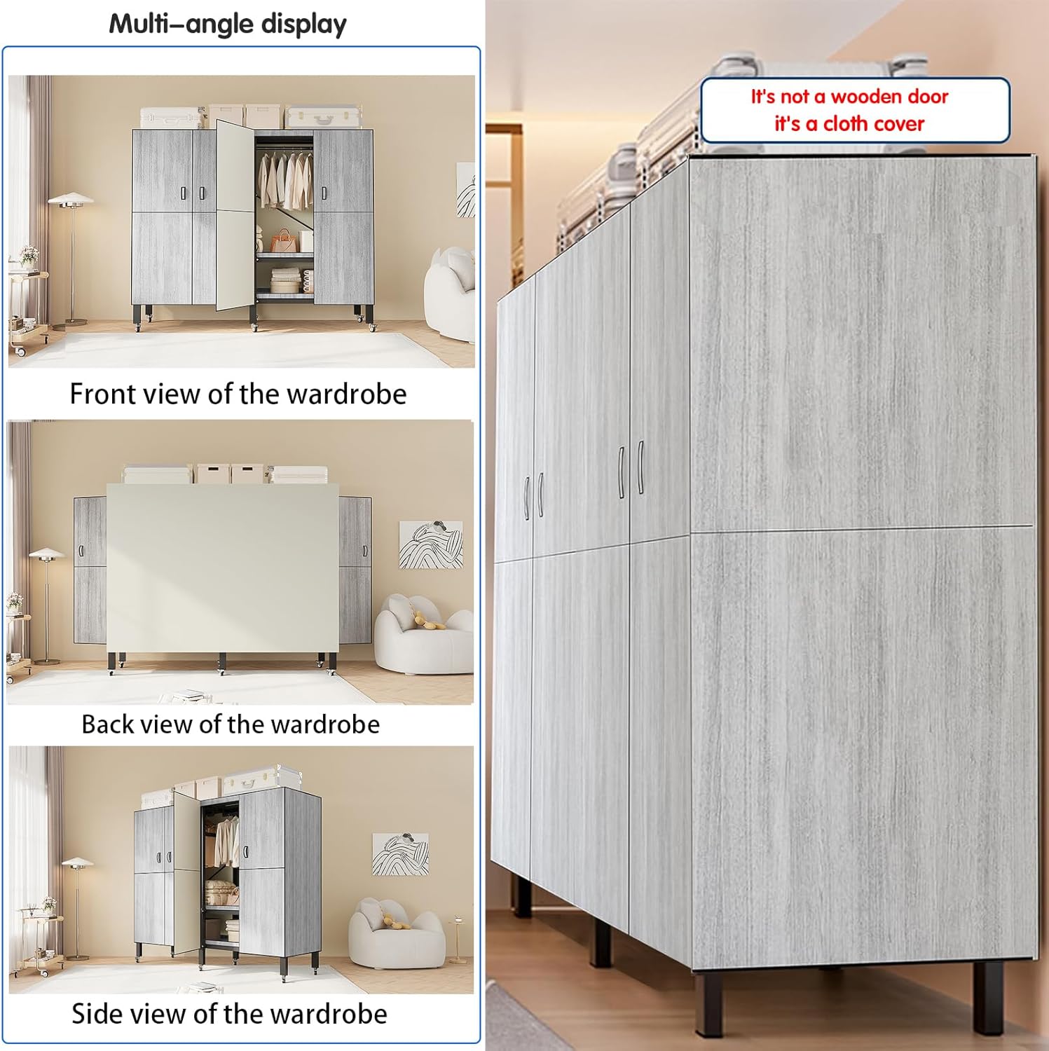 【Garment Rack with Cover and Wheels】Portable closet with wheels can be placed anywhere in the room. The wardrobe closet is an ideal storage for corners and entrances. The portable clothing rack is very suitable for use in bedrooms, living rooms, cloakrooms, garages, dorm, apartment, etc. The portable wardrobe closet can solve your storage problems, keep your space neat and orderly, and keep your home clean and comfortable.