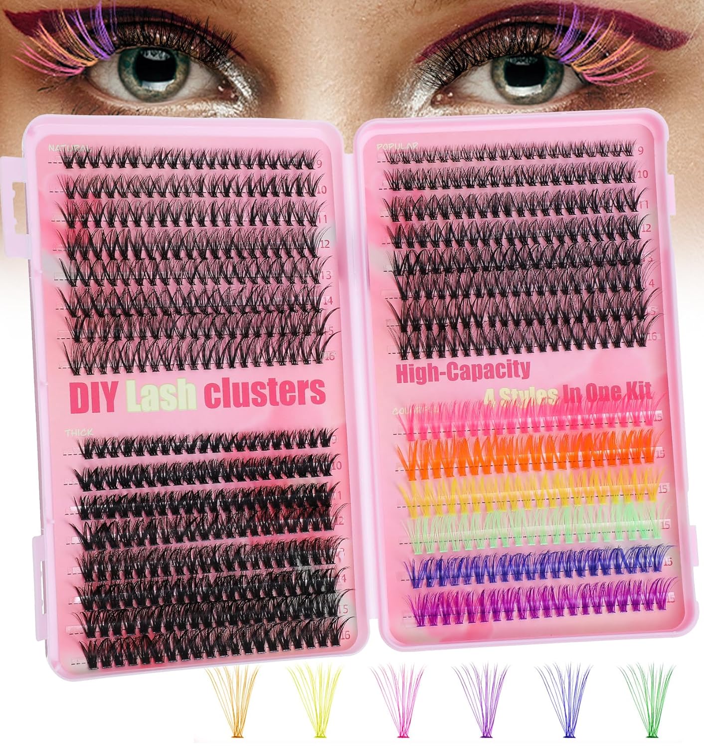Vibrant Color Variety - Our lash clusters colored includes 600 individual lashes in a mix of black and vibrant hues, offering 30D, 40D, and 50D densities for customizable volume and style