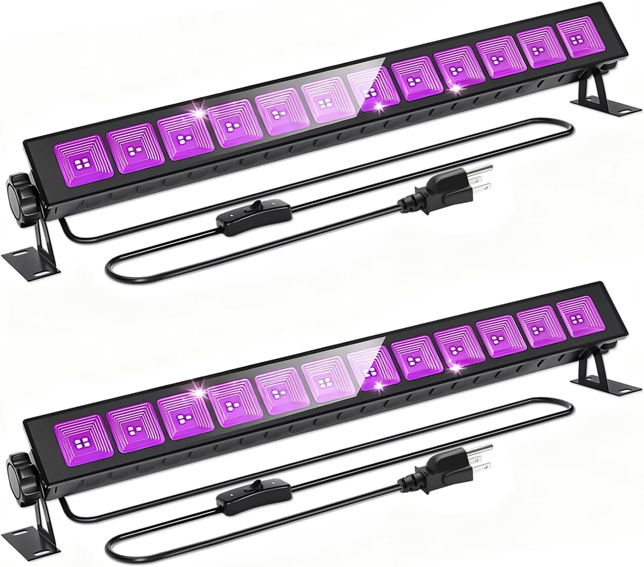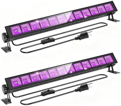 2 Pack LED Black Light Bar 45W, IP66 Waterproof Blacklight with Plug & Switch, Black Light for Glow Party, Halloween Decorations, Fluorescent Poster, Body Paint, Bedroom, Classroom