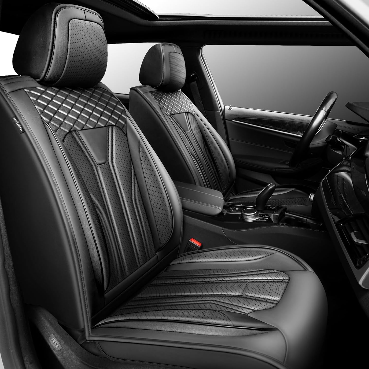 Fit Car Seat Covers for 2005-2024 2025 -Full Set Premium Leather, Waterproof,Breathable,All-Weather Seat Cushion Protecto & Airbag Compatible 【All Black】(KBJ-2021-21)