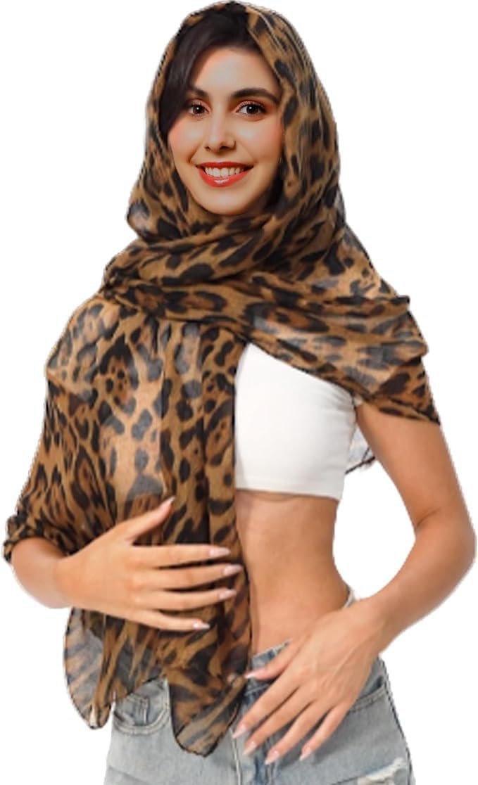 Forlisea Womens Leopard Print Shawls and Wraps Neck Scarf Brown Scarves Soft Voile Sheer Beach Scarves Sunscreen Head Shawl Pashmina