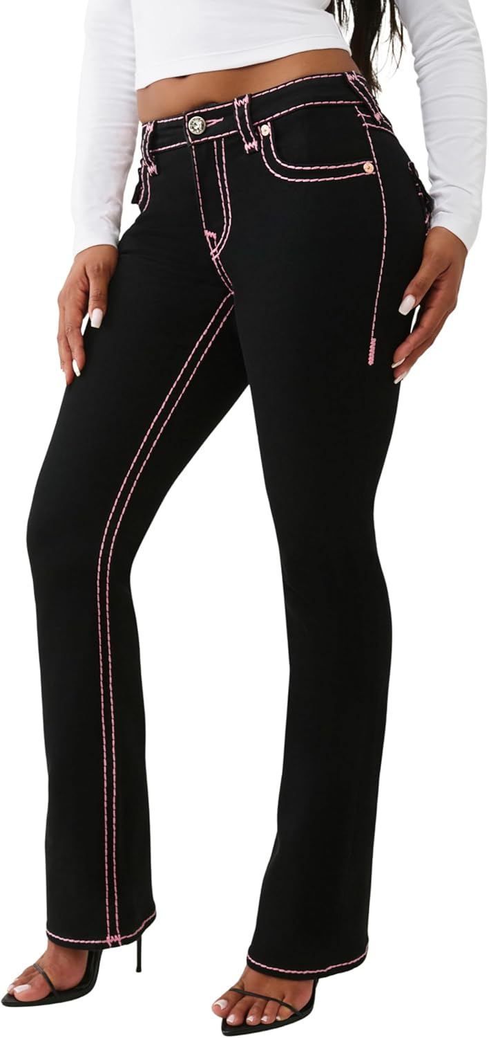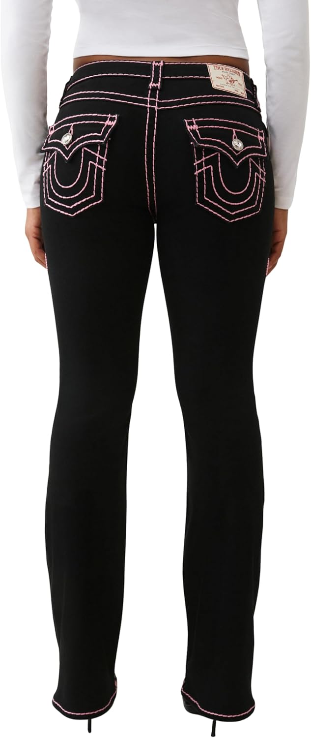 Step into bold denim with the True Religion Becca Boot Flap Big T Mid Rise Bootcut Jeans — a rebellious twist on a timeless fit. Designed for women who embrace individuality, these jeans bring a perfect balance of edge and elegance. Crafted in light wash denim with subtle fading and whiskering, they channel vintage-inspired cool while keeping a modern, fashion-forward silhouette. The mid-rise waist and bootcut leg deliver a flattering fit that complements any style. Pink Big T stitching and signature horseshoe embroidery on the back flap pockets bring True Religion’s iconic DNA, while rose gold hardware adds a luxe touch. Built from premium cotton with stretch for lasting comfort, these jeans are made to move with you. Whether paired with boots or heels, the Becca Boot Flap Jean proves that womens jeans can be bold, fearless, and unapologetically stylish just like you.