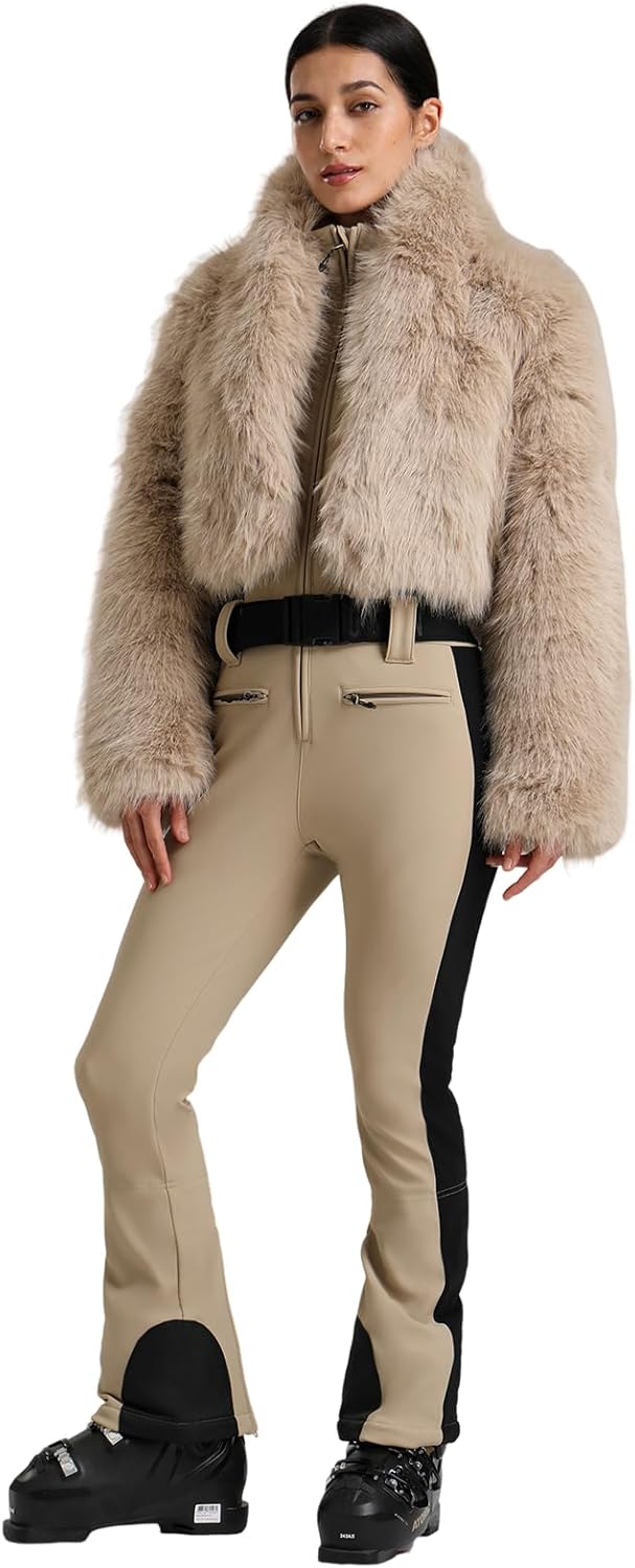 GSOU SNOW Women Ski Suit One Piece Snowsuit Snowboard Faux Fur Collar Slim Jumpsuit Jacket Insulated Windproof Outdoor Winter