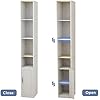 VERSATILE STORAGE: The narrow design slim bookcase with door for multiple unit combinations to create a personalized collection and display wall. Tall slim cabinet with 4 open shelves and bottom cabinet door, perfect for bathroom supplies, CDs, DVDs, books, or media storage, picture frames, and potted plants, keeping your area organized and accessible