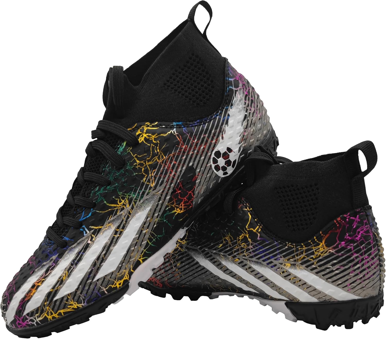 High tops ankle boots with breathable lining and lace fasten style adjust freely to keep Inner complete comfort. The cleats men football shoes designed with a sock mouth, it is easy to put on and take off, giving you a 100% different experience. Provides maximum traction for your sturdy ground outsole. It suits for many occasions, Football trainers, Indoor court, Competition etc. Occasions: Soft, firm ground, hard ground, artificial ground. SIZE CHART US 3.5 Big Kid = Inner length 9.07inch/23.04cm = EU 35 US 4.5 Big Kid = Inner length 9.33inch/23.70cm = EU 36 US 5.5 Big Kid = Inner length 9.61inch/24.4cm = EU 37 US 6 Big Kid = Inner length 9.85inch/25.02cm = EU 38 US 7 Big Kid = Inner length 10.11inch/25.68cm = EU 39 US 7.5 Big Kid = Inner length 10.37inch/26.34cm = EU 40 US 8.5 Big Kid = Inner length 10.63inch/27.00cm = EU 41 US 9 Big Kid = Inner length 10.89inch/27.66cm = EU 42 US 10 Big Kid = Inner length 11.15inch/28.32cm = EU 43 NOTE: 1.Please choose shoes size according to the shoe’s Inner length. 2.If you have wide Inner, please choose a half or one size up. 3.The size your need=length of your feet+0.5~1cm.