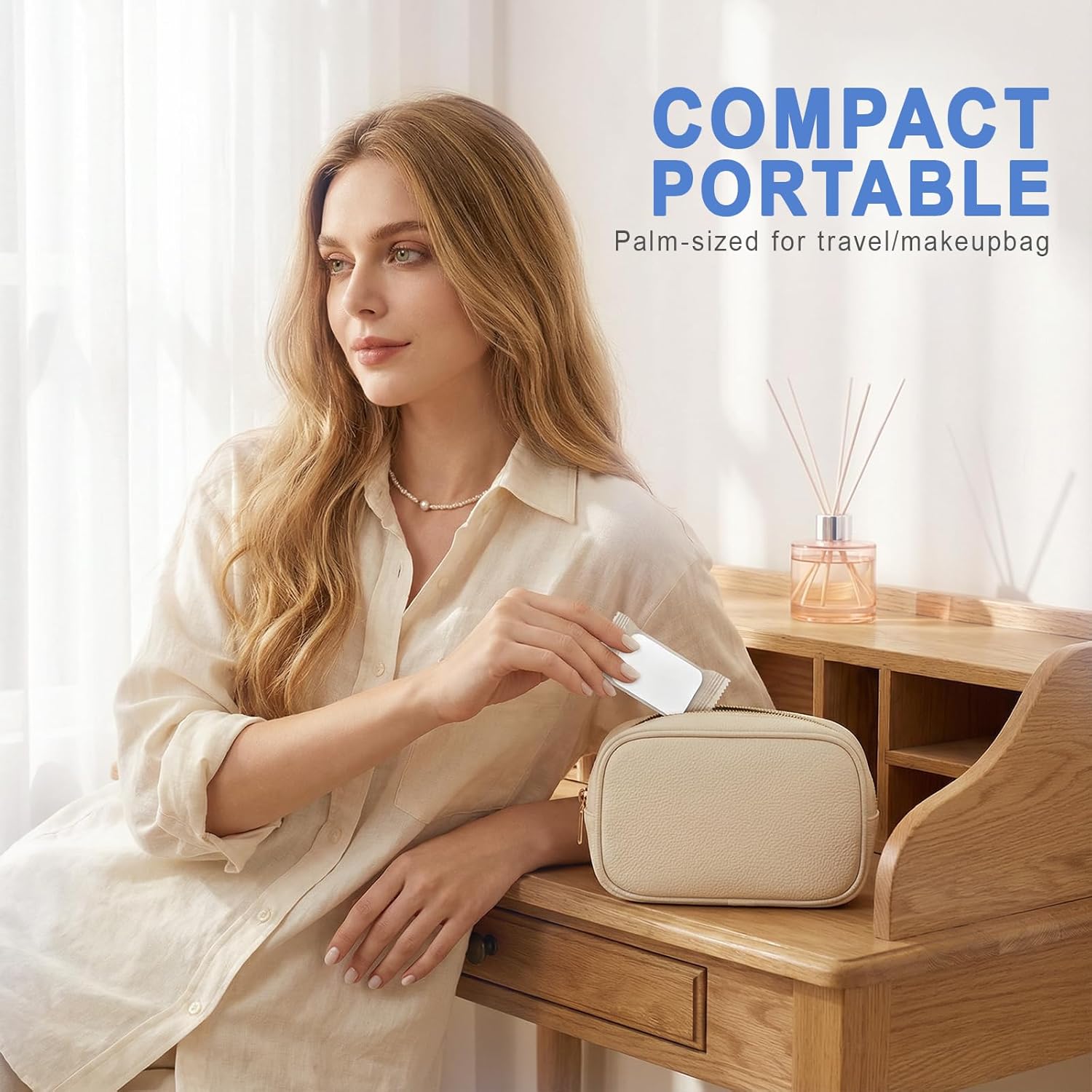 【Compact Size with Individual Sealed Packaging】Each towel comes in a moisture-proof small package (1.1×2.75 inches), compact and portable enough to fit easily into pockets, travel bags, or makeup bags. It takes up no space, making it ideal for outdoor use. When exposed to water, it unfolds to 9.44×11.8 inches, large enough for full-face or hand cleaning.