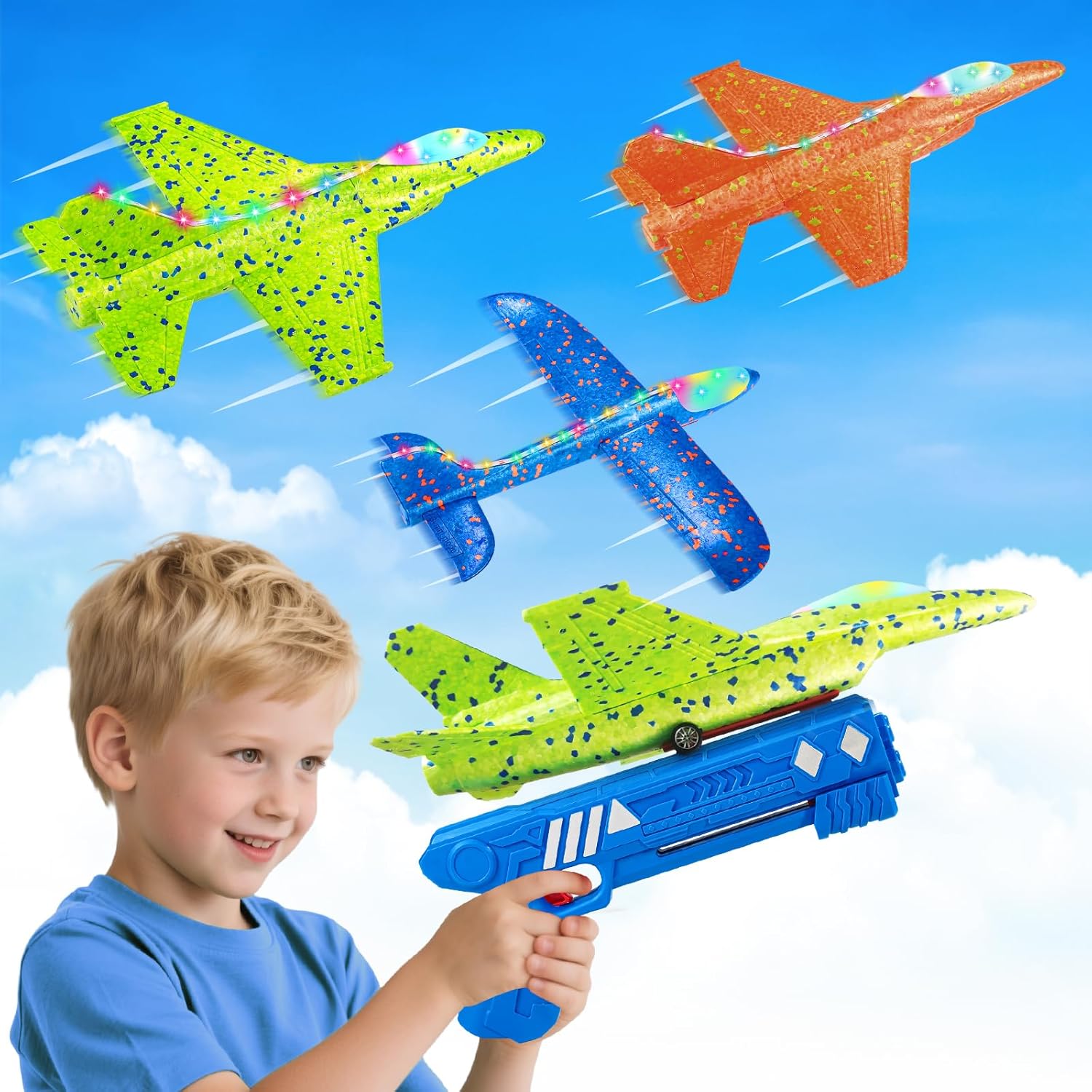 3 Pack Airplane Launcher Toys, 13.2 inch LED Foam Combat & Glider Catapult Plane for Boys, 2 Plane Modes Outdoor Flying Toys Birthday for Boys Girls 4 5 6 7 8 9 10 11 12 Year Old
