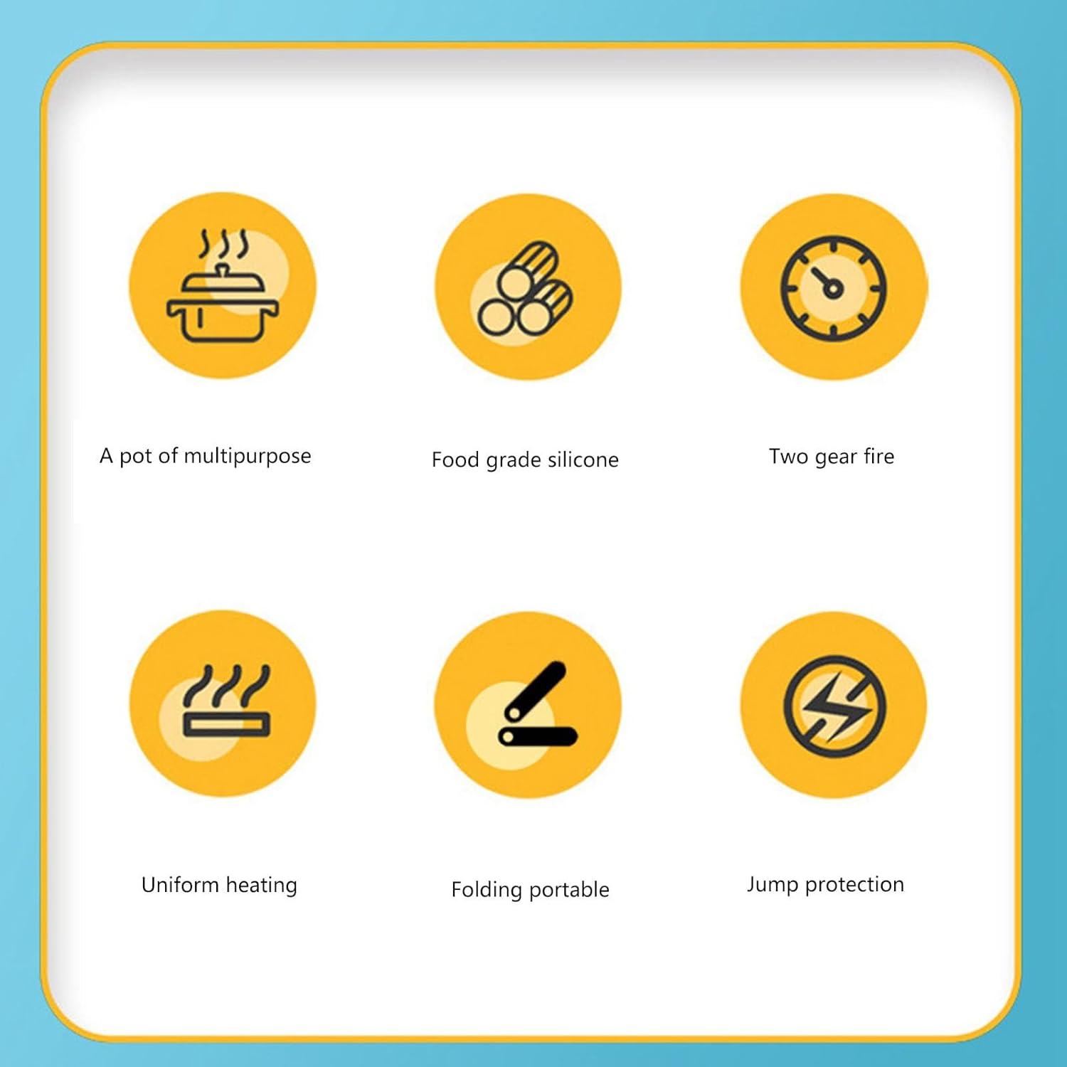 2. Food-Grade Silicone Construction: The main pot body is crafted from food-grade silicone, rigorously tested for safety. It emits no odors or harmful substances. When exposed to high-temperature ingredients, it produces no compounds, ensuring safe consumption of cooked food. Safe for use by seniors and children.