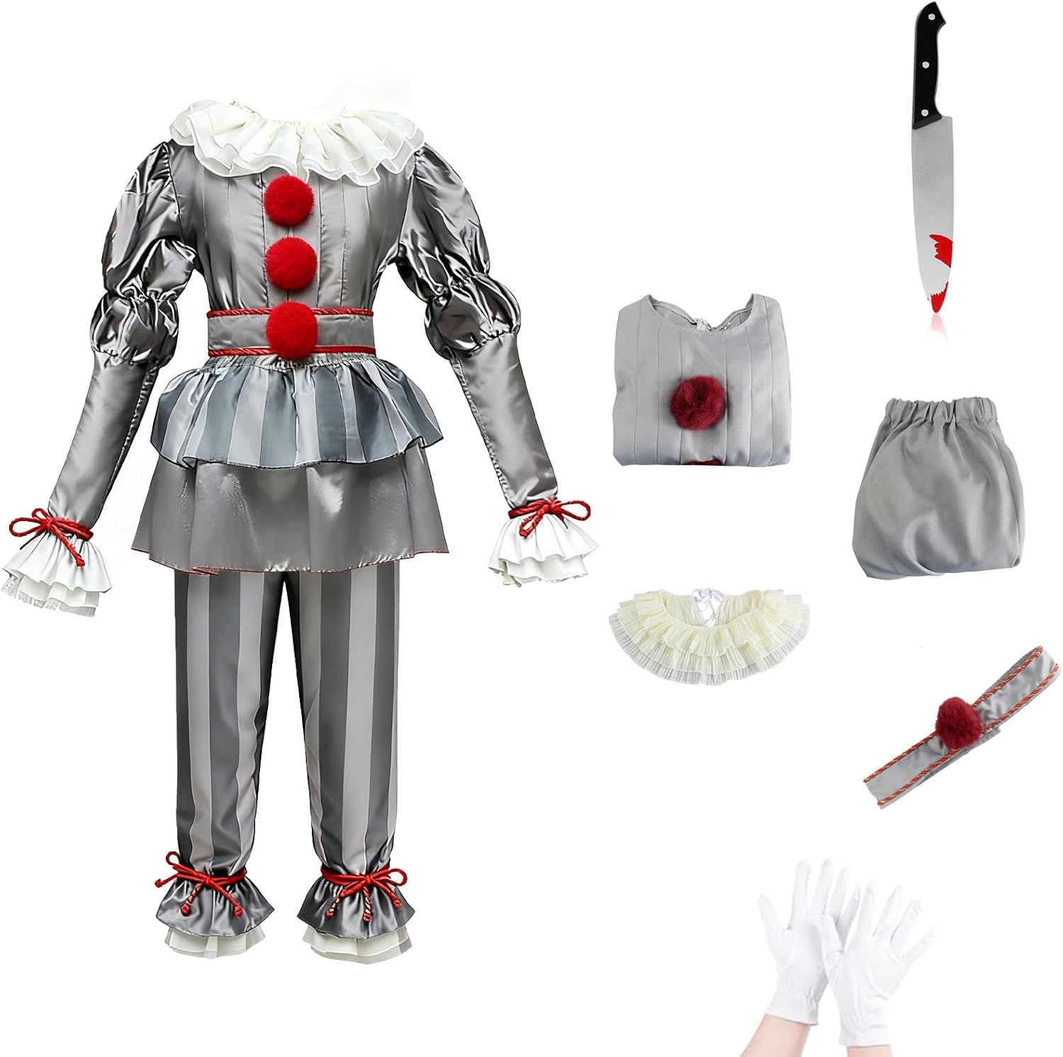 6Pcs Scary Clown Penny Costume Set for Wise Clown Outfit with White Gloves Plastic Knife Outfit for Cosplay