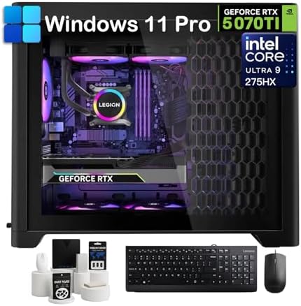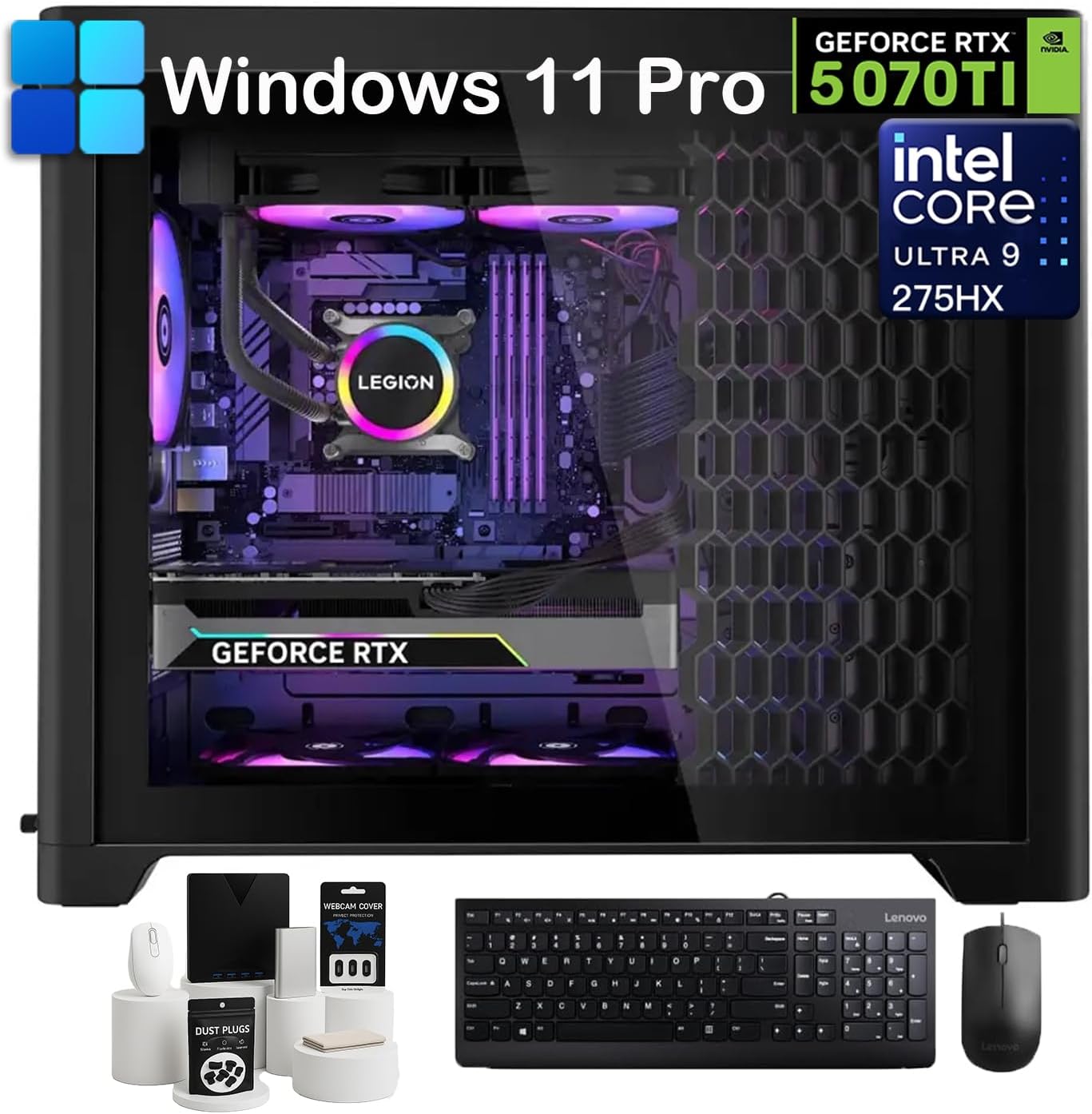 Lenovo Legion Tower 5i Gen 10 Gaming Desktop PC, Intel 24 Core Ultra 9 275HX, NVIDIA GeForce RTX 5070 Ti, 64GB DDR5, 2TB SSD, 2TB HDD, 200W Liquid Cooling, ARGB Fans, Windows 11 Pro, Accessories